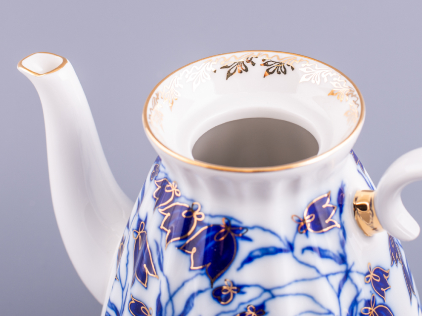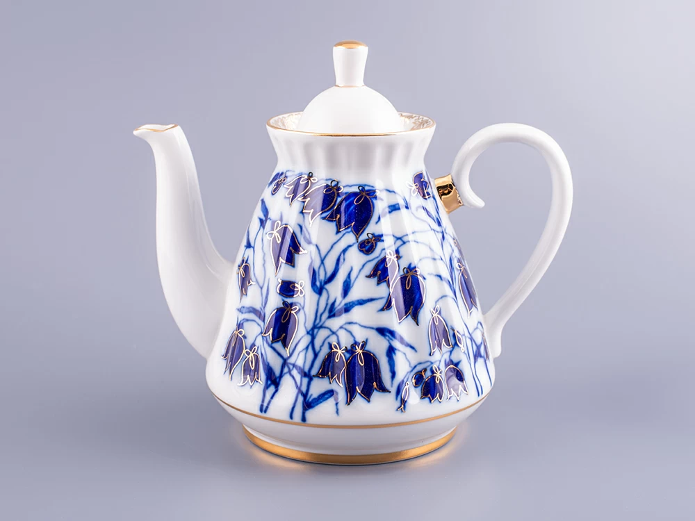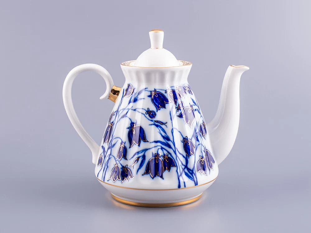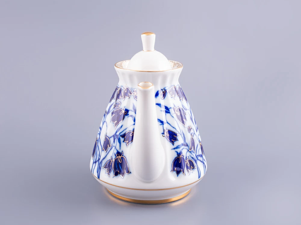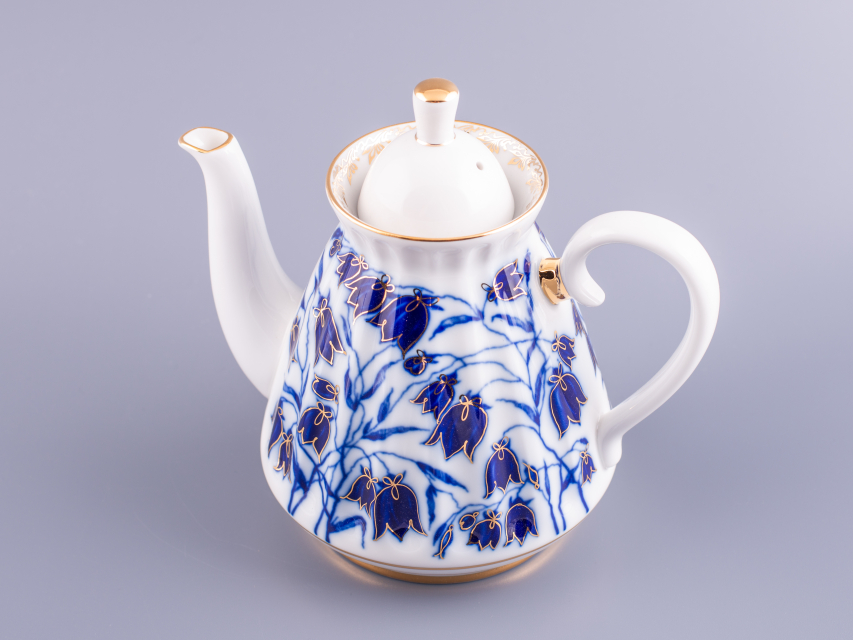 Чайник заварной рис. Колокольчики изготовлен на Императорском фарфоровом заводе из твердого фарфора с элементами ручной росписи. Автор рисунка - Славина Н.П. Объем изделия - 750 мл.