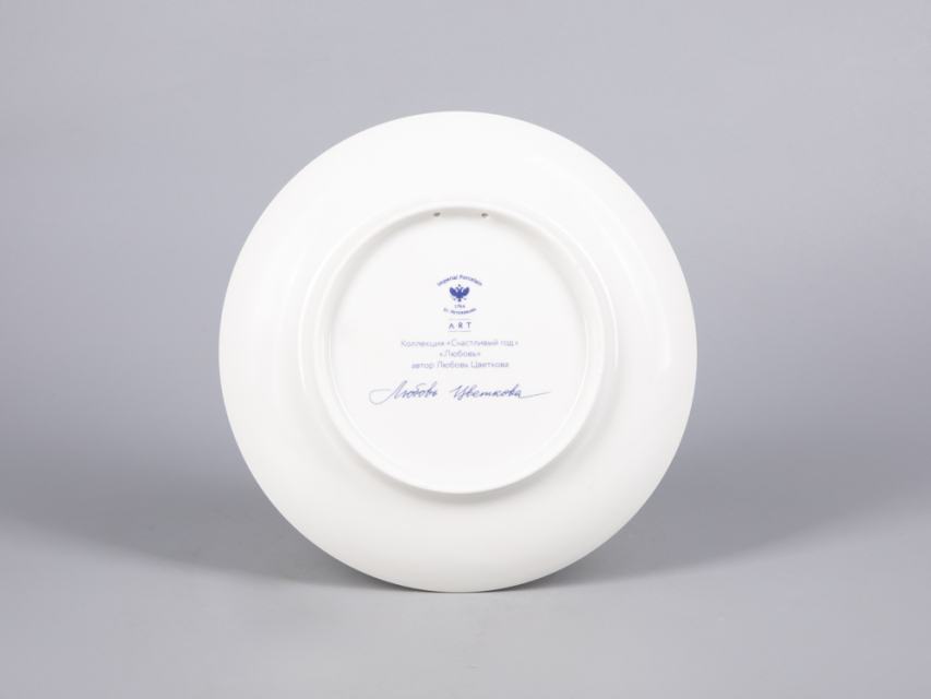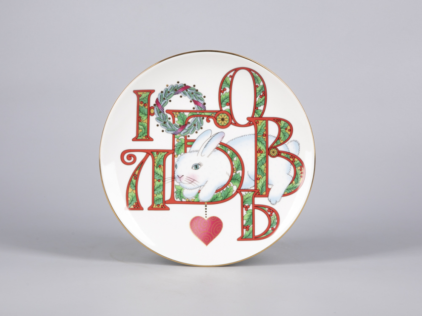 Декоративная тарелка с пожеланием любви входит в серию из трех тарелок "Счастливый год". Украсивший тарелку кролик отличается кротким нравом, нежностью и мягкостью. Считается, что предмет с изображением кролика поможет привлечь удачу и сохранить счастье и благополучие в доме. Такой интерьерный аксессуар станет замечательным подарком и для себя, и для близких.