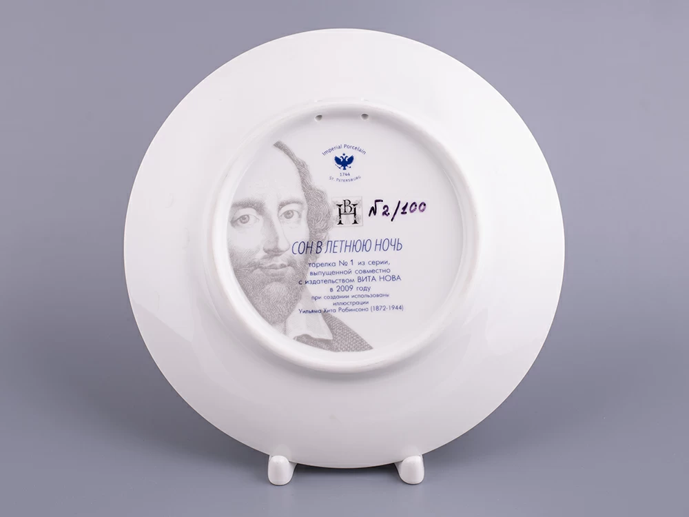 Серия тарелок Сон в летнюю ночь изготовлена на Императорском фарфоровом заводе из твердого фарфора в 2009 году