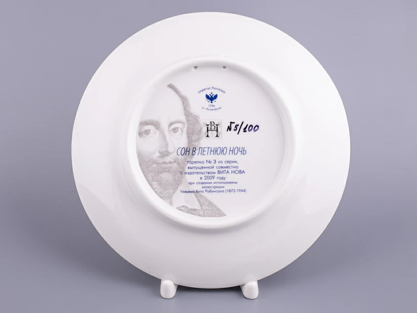 Серия тарелок Сон в летнюю ночь изготовлена на Императорском фарфоровом заводе из твердого фарфора в 2009 году