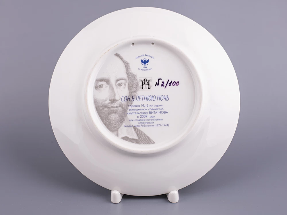 Серия тарелок Сон в летнюю ночь изготовлена на Императорском фарфоровом заводе из твердого фарфора в 2009 году