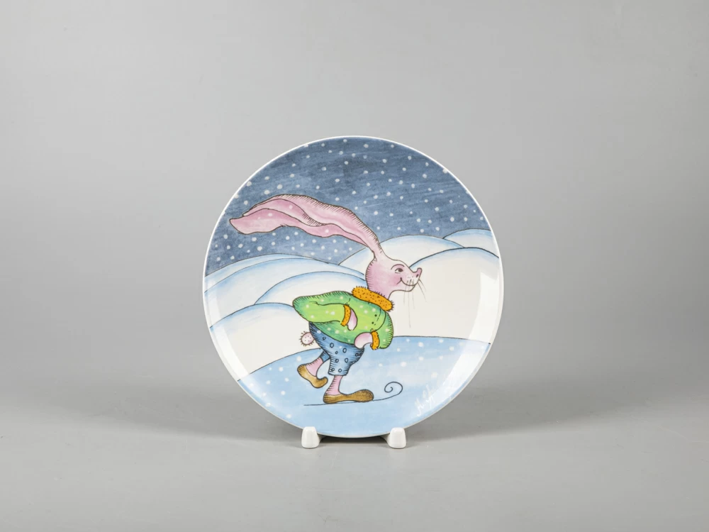 Декоративная тарелка 195 мм форма Эллипс рисунок Зима. Заяц арт. 81.31055.00.1