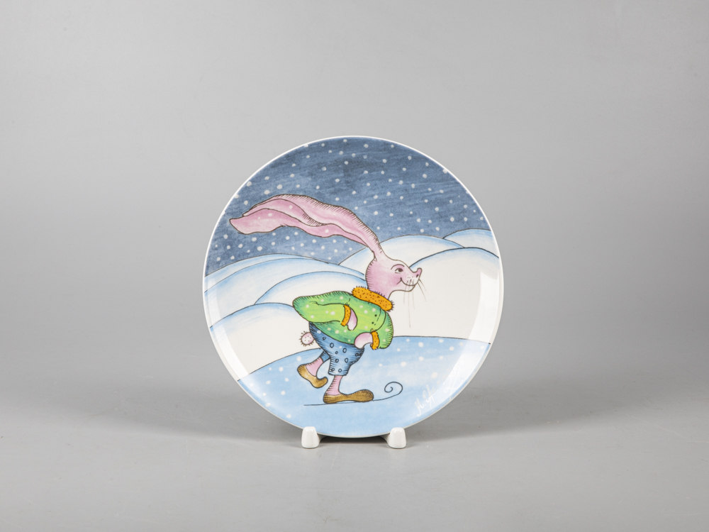 Декоративная тарелка серии "Зима" новинка 2022 года - входит в коллекцию "Мир в каплях воды". Как и в других своих работах, Михаил Шемякин изображает персонажа, играющего в любимую многими зимнюю забаву - хоккей. Рисунок специально адаптирован к фарфору, который Михаил Шемякин тонко чувствует и понимает, создавая оригинальные произведения, с присущим художнику видением мира и высочайшим мастерством, воплощенным в материале.