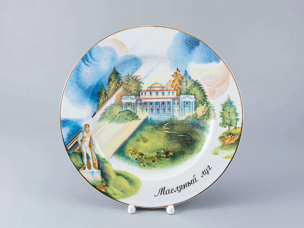 Тарелка декоративная рисунок Елагиноостровский Дворец-Музей изготовлена на Императорском фарфоровом заводе из твердого фарфора с элементами ручной росписи. Автор рисунка - Троицкая Н.Е. Диаметр изделия - 270 мм.