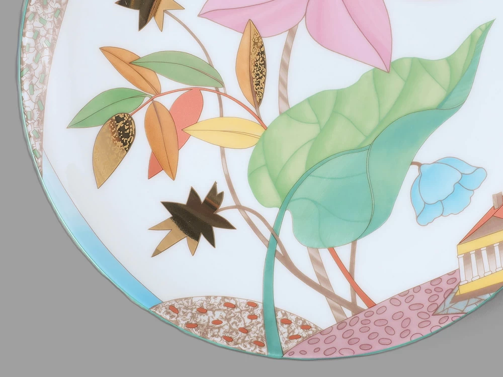 Мастерски собранные художником букеты фантазийных цветов поражают воображение. На горизонте возникают сказочные петербургские здания, а в облаках свободно летают яркие птицы. Необыкновенная палитра красок и игра с текстурами, характерные для творческого почерка Татьяны Васильевны Афанасьевой, придают декоративным тарелкам из серии «Флорентийские цветы» поистине драгоценный вид и подчеркивают исключительное качество материала. Безграничная фантазия и тонкий художественный вкус автора способствовали созданию великолепных и ярких образов, сочетающих в себе атмосферу летнего города, неисчерпаемую игру воображения и легкое, безмятежное настроение.
