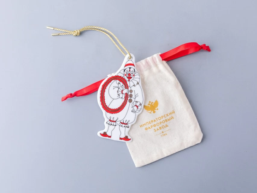 Елочное украшение «Клоун» из серии Grand Cirque Vintage приглашает отправиться в увлекательное путешествие по чудесному миру цирка и детских воспоминаний. Художник Любовь Цветкова создала оригинальный рисунок, черпая вдохновение в афишах знаменитого Цирка Чинизелли и уникальных архивных снимках начала XX века. Особое внимание уделено деталям: даже грим главного героя-клоуна воссоздан с максимальной точностью, повторяя черты образа тех времен. Кроме того, у игрушки есть «изюминка»: логотип ИФЗ является частью композиции на фарфоре.