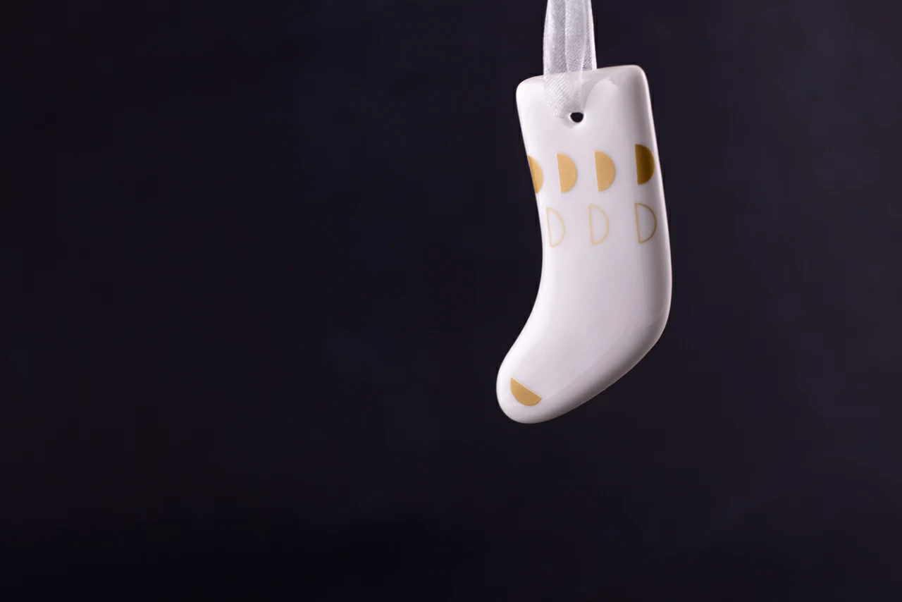 Елочное украшение изготовлено на Императорском фарфоровом заводе из твердого фарфора