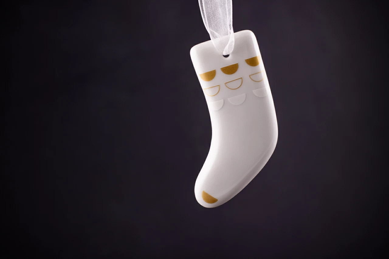 Елочное украшение изготовлено на Императорском фарфоровом заводе из твердого фарфора