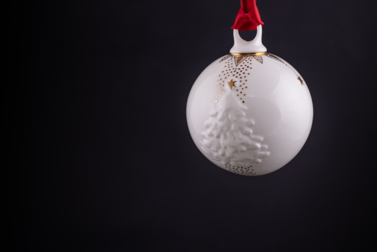 Елочная игрушка изготовлена на Императорском фарфоровом заводе из костяного фарфора.