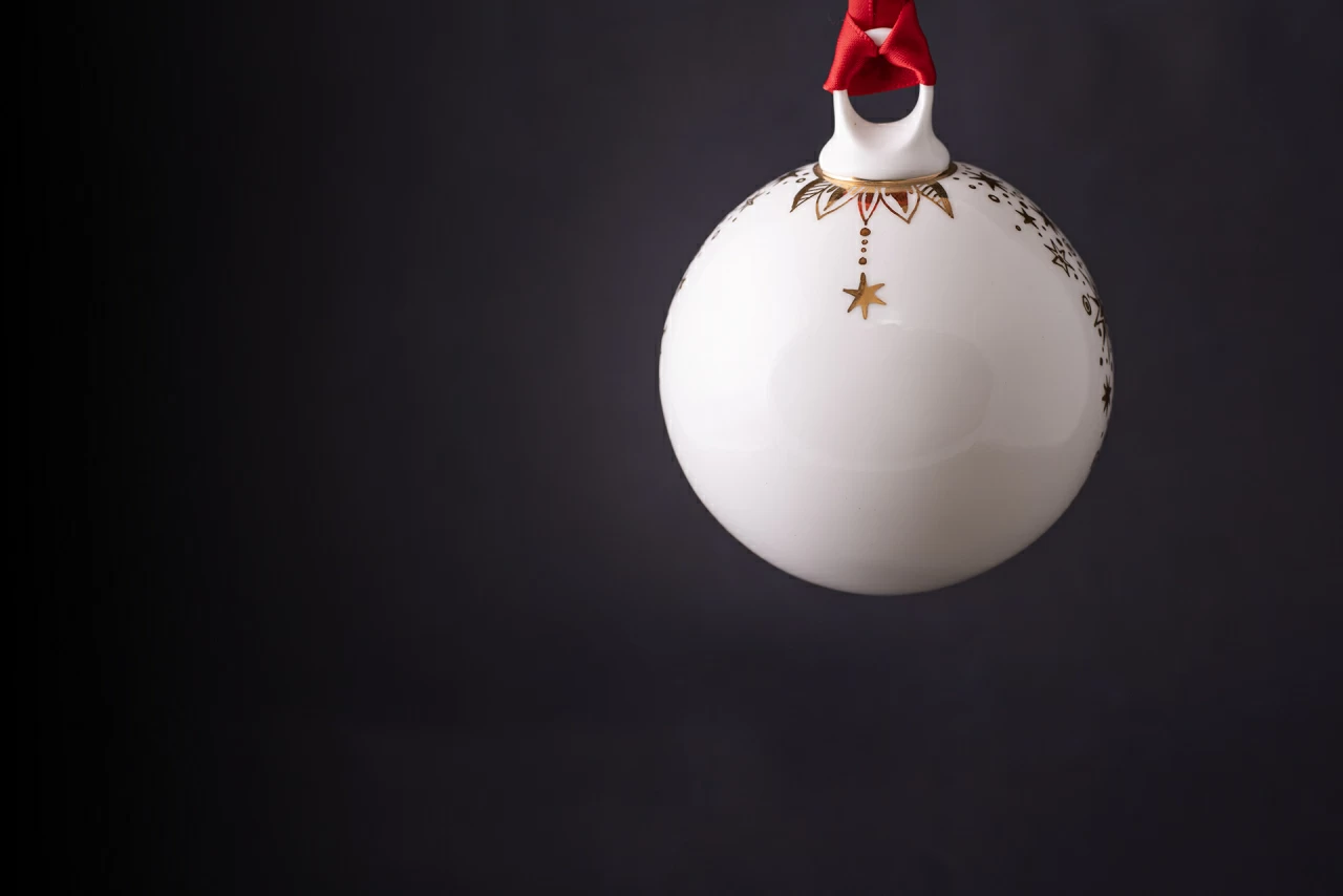 Елочная игрушка изготовлена на Императорском фарфоровом заводе из костяного фарфора.