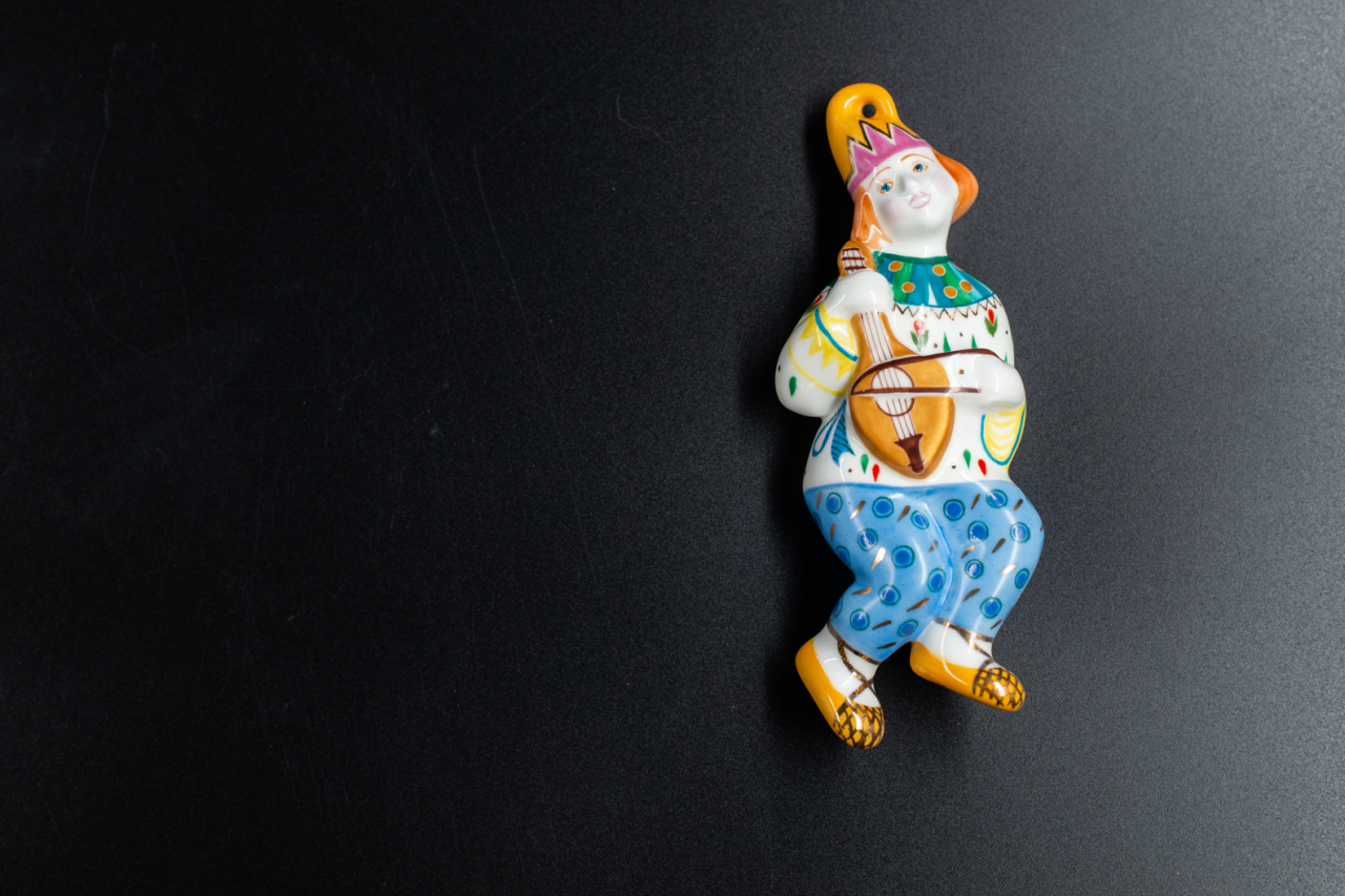 Многие художники и скульпторы завода продолжают обширную коллекцию фарфора, посвященную русскому фольклору и народными персонажами. Особого внимания заслуживает серия игрушек с росписью Марии Матвеевой. Посвящена она традиционным ярмарочным развлечениям, где центральное место занимают фигуры скоморохов с различными музыкальными инструментами и медведь с бубном. Эти образы олицетворяют яркую и самобытную культуру народных гуляний, передавая дух эпохи, когда праздник был не только временем радости, но и важным событием.