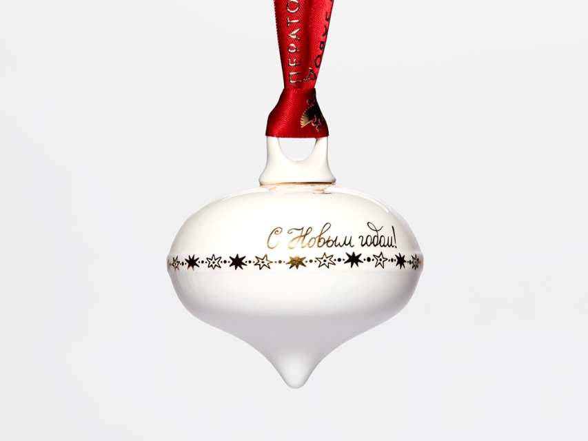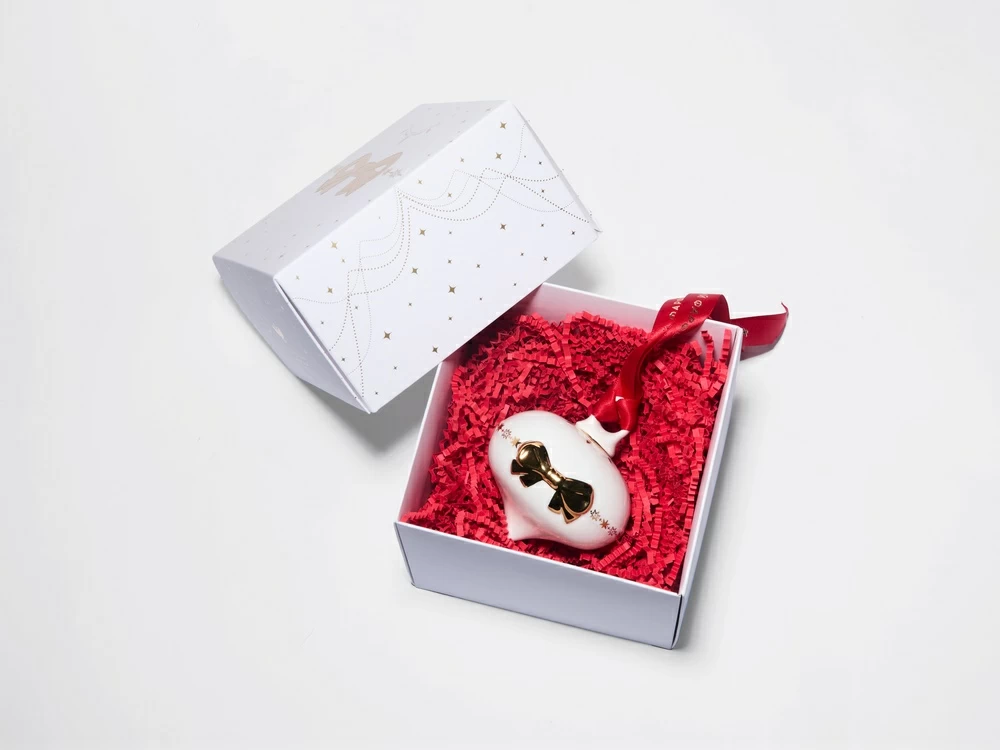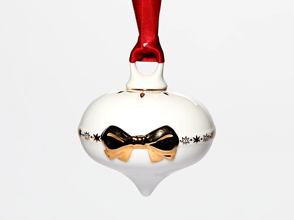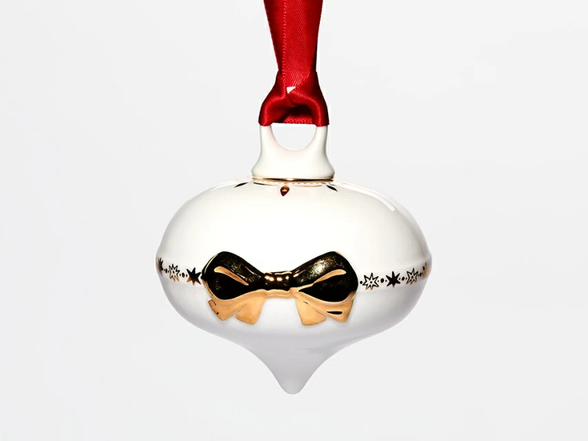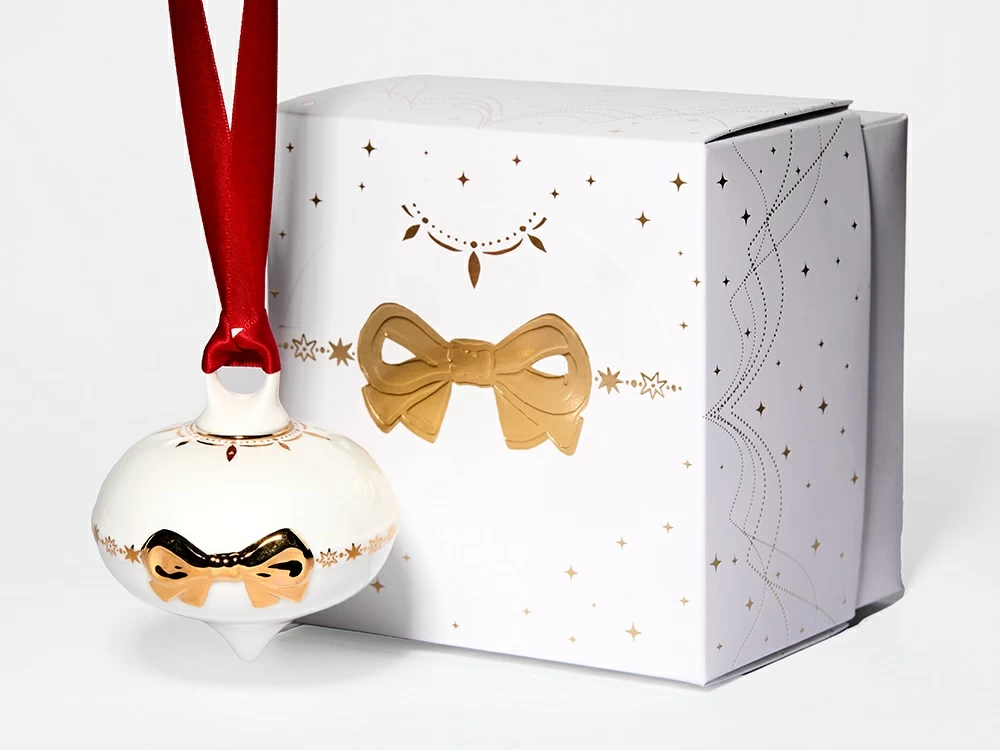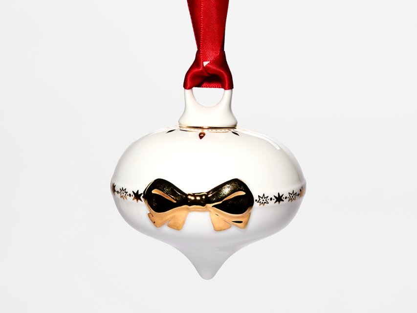Елочная игрушка в подарочной упаковке, форма Луковица, рисунок Золотой бант, арт. 81.33930.00.1