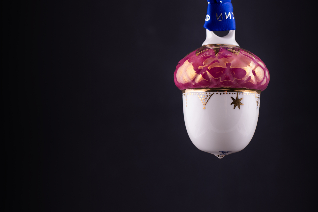 Елочная игрушка изготовлена на Императорском фарфоровом заводе из костяного фарфора.
