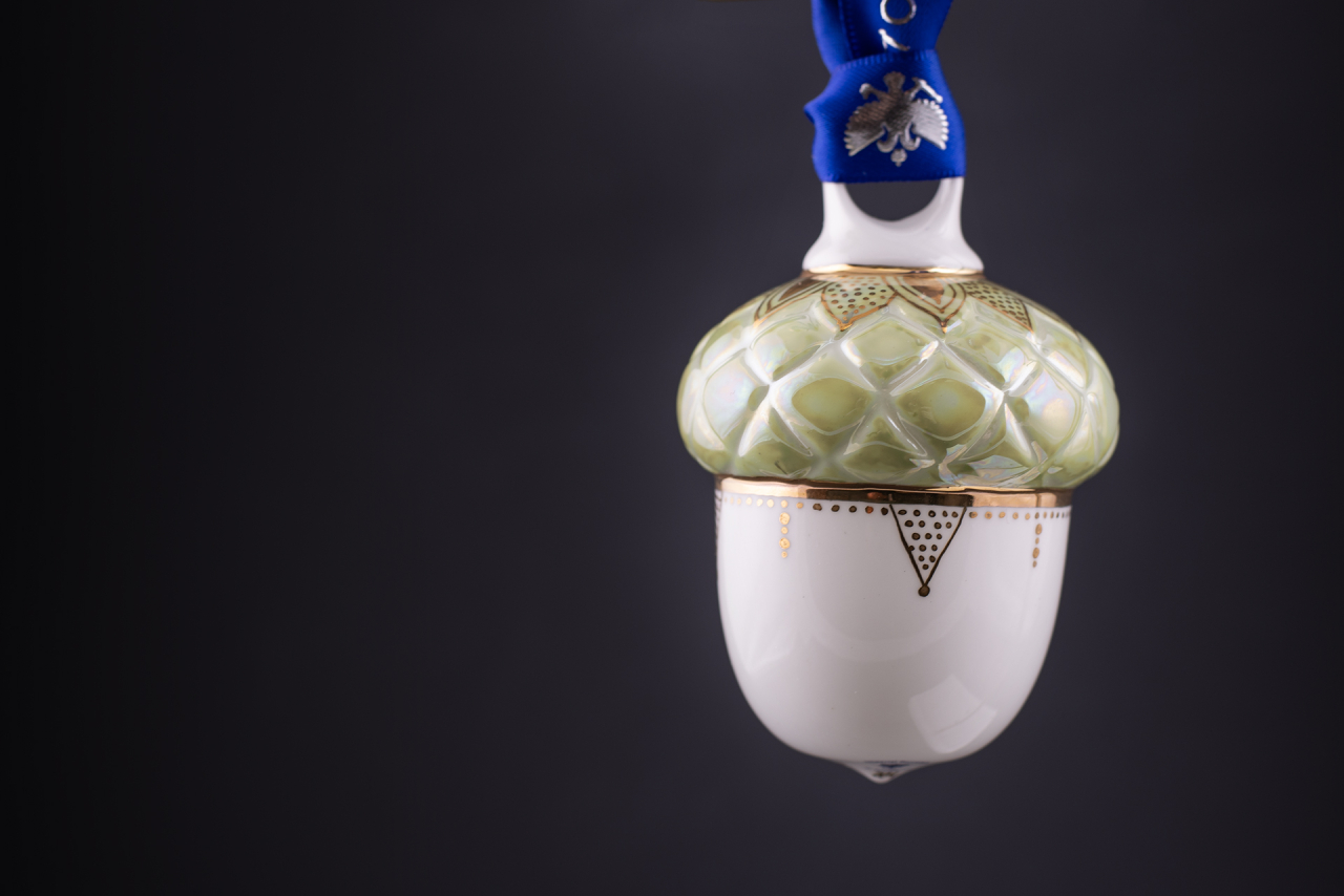 Елочная игрушка изготовлена на Императорском фарфоровом заводе из костяного фарфора.