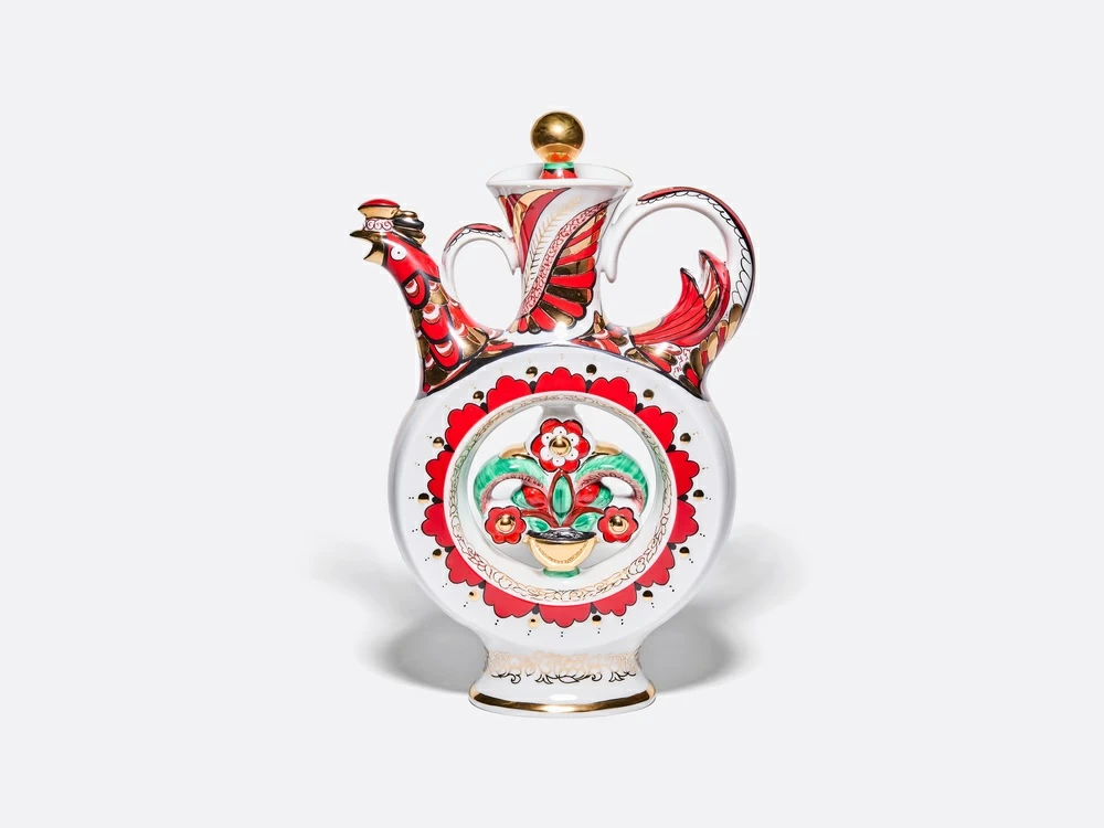 Графин создан в 50-х годах 20 века заслуженным художником РСФСР Криммером Эдуардом Михайловичем. Графин выполнен в форме фантастической птицы с ярко-красным и золотым оперением, в центре туловища которой расположен букет цветов в вазе. При наливании, покачивании и выливании воды издаёт звуки, отдалённо напоминающие птичьи.