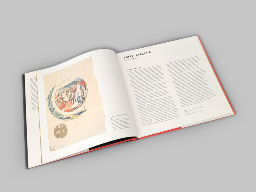 Настоящее издание - «Вокруг квадрата» - сопровождает уникальную выставку, открытую в Эрмитажных комнатах в Сомерсет-хаусе в Лондоне. Оно включает более 300 цветных иллюстраций фарфоровых изделий и 70 графических произведений, датируемых периодом с 1918 до середины 1930-х годов. Многие рисунки публикуются впервые, в том числе эскизы, выполненные В.В. Кандинским. Основные экспонаты выставки взяты из исторической коллекции «Музея фарфорового завода» - недавно открытого отдела Государственного Эрмитажа, расположенного на территории Ломоносовского фарфорового завода.