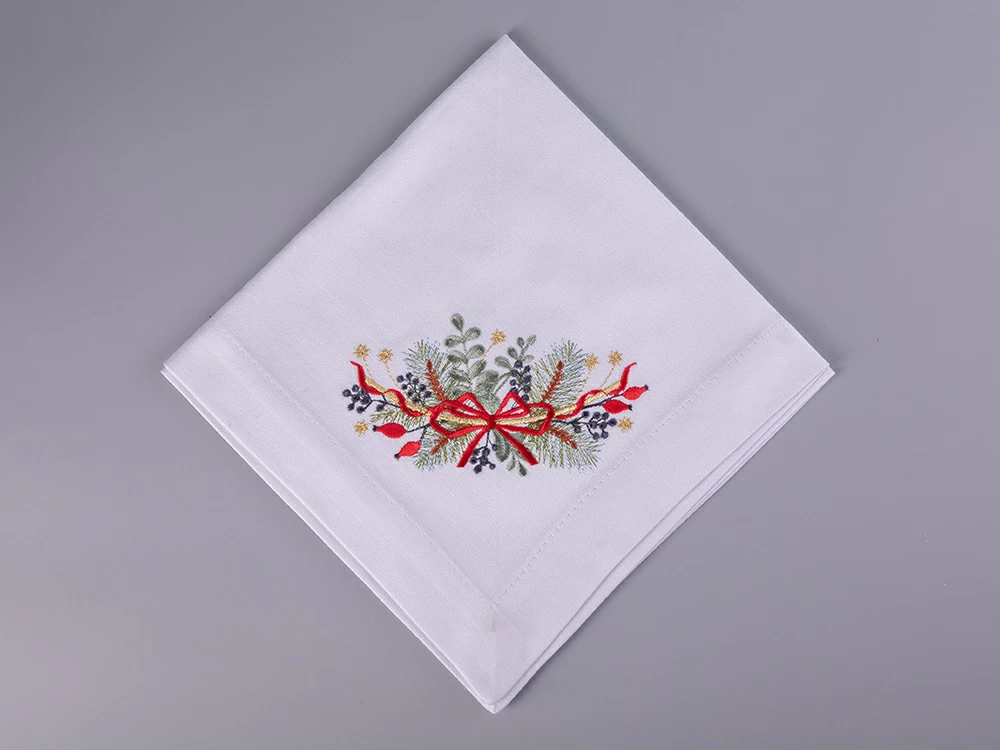 Набор салфеток "Календа" - изящное дополнение к одноименной коллекции фарфора. Салфетки выполнены из высококачественного 100% хлопка. Многоцветный рисунок повторяет узор рождественского венка, изображенного на фарфоре, и выполнен при помощи машинной вышивки. Такой декор отличается высокой прочностью и износостойкость. При бережном уходе вышивка сохранит свой первоначальный вид на долгий срок.