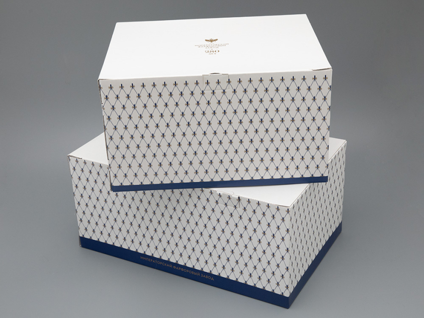 Императорский фарфоровый завод предлагает широкий выбор подарочных коробок и пакетов с фирменной символикой.