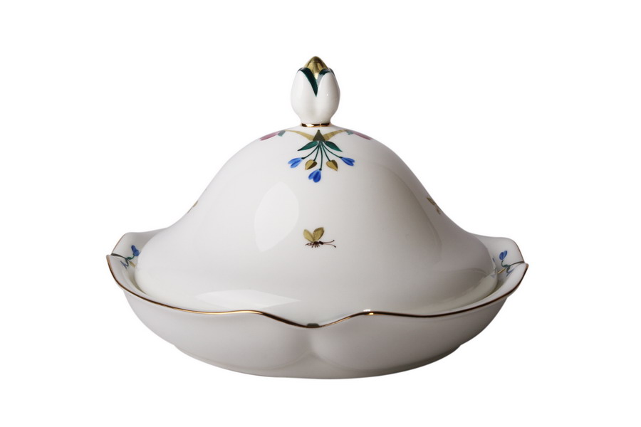 Рисунок "Невеста" создан заслуженным художником России Татьяной Афанасьевой в 1997 году. Роспись исполнена по мотивам цветочной живописи мастеров Императорского фарфорового завода середины ХIХ века. Нежность произведения подчеркивается плавными изгибами формы, на которой застыли изящные незатейливые букетики. Трогательность декору придают крошечные бабочки, порхающие вокруг цветов. Тонкая золотая отводка довершает картину, создавая удивительно нежное и гармоничное произведение.