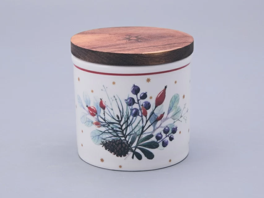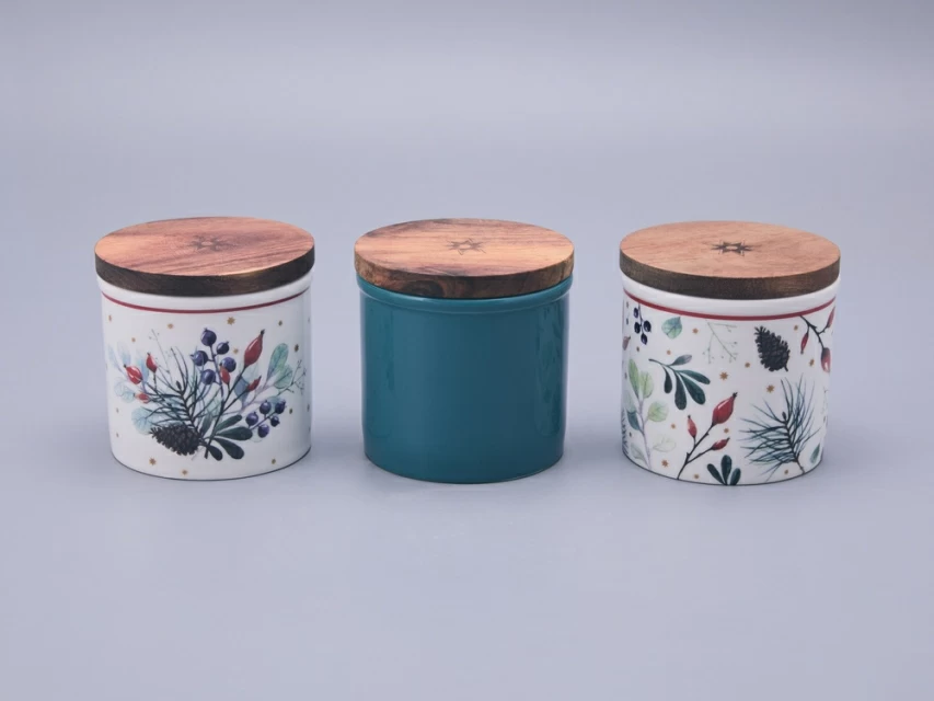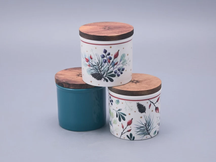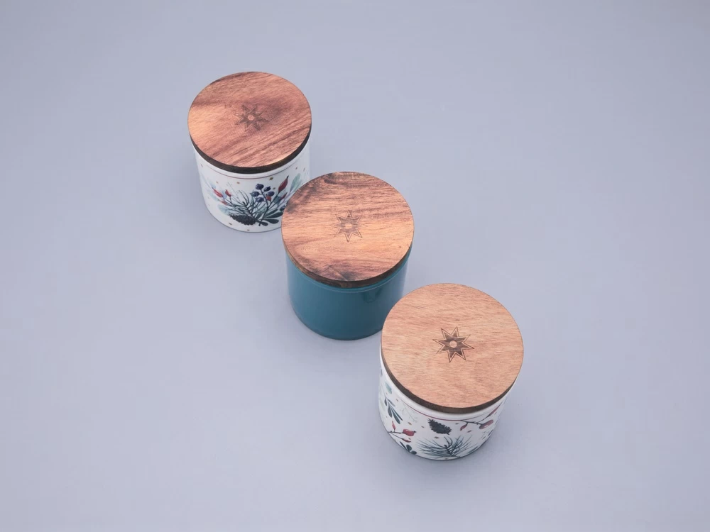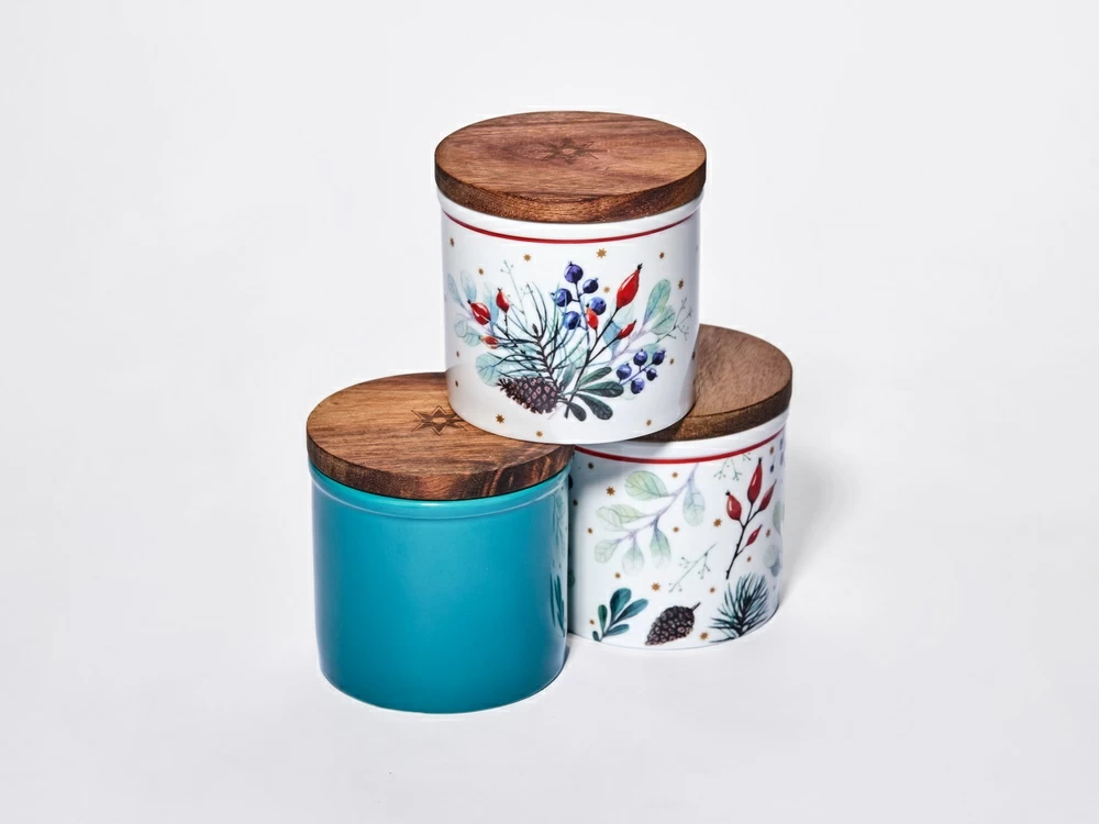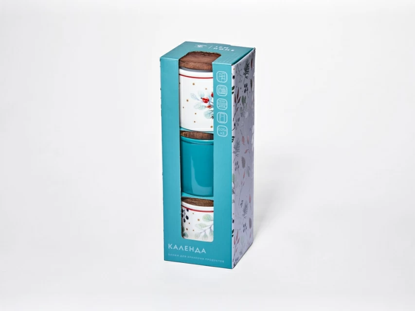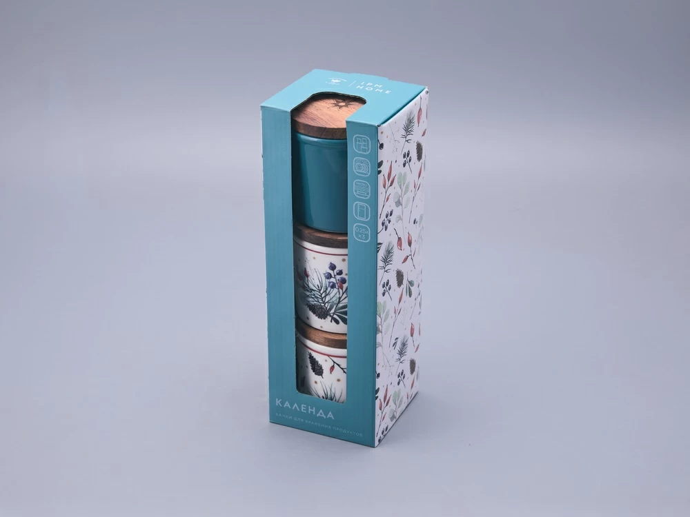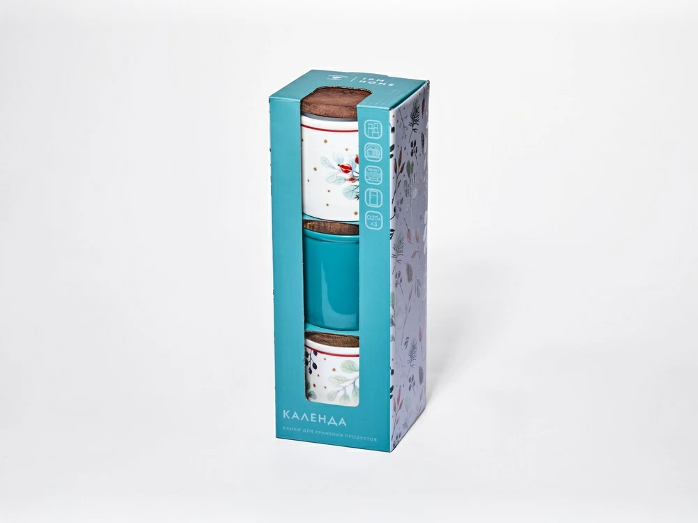Набор банок 80 мм с деревянной крышкой (3 предмета), в подарочной упаковке, форма Стандартная, рисунок Календа, арт 42.00071.00.1