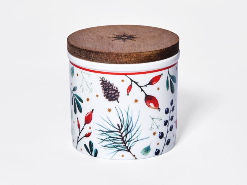 Серия для хранения и запекания «Календа» стала продолжением популярной одноименной коллекции чайного и столового фарфора художника Юлии Гайлис (Чистяковой). Как и на других предметах коллекции, основным декоративным элементом является использование растительных мотивов: ягод и веточек хвойных деревьев.