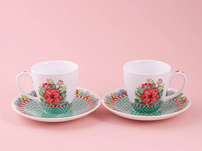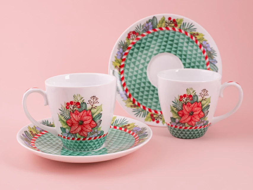 Набор бокалов с блюдцем 2шт форма Весна, рисунок Зимняя история (зеленый) арт. 81.11373.00.1