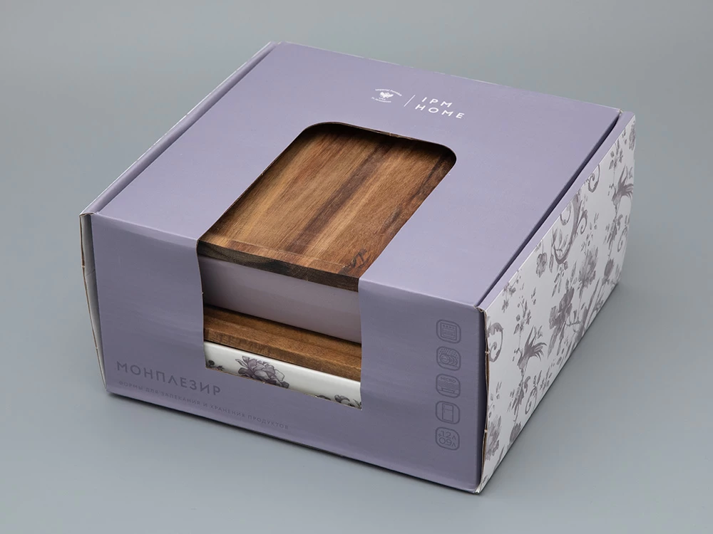 Набор для запекания Monplaisir – незаменимый помощник для любителей кулинарии. Формы можно использовать для приготовления самых разных блюд: от нежнейших запеканок до пирогов, мясных и рыбных блюд, так как использовать формы можно до 230 °C. После остывания блюда в форме можно хранить в холодильнике, – крышка из дерева акации надежно сохранит вкус и свежесть продуктов. Формы украшены изящным рисунком в стиле шинуазри. В декоре угадываются дивные цветы и птицы.