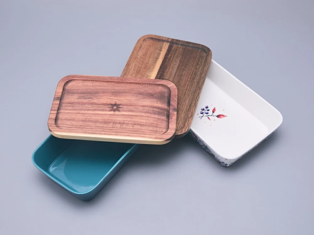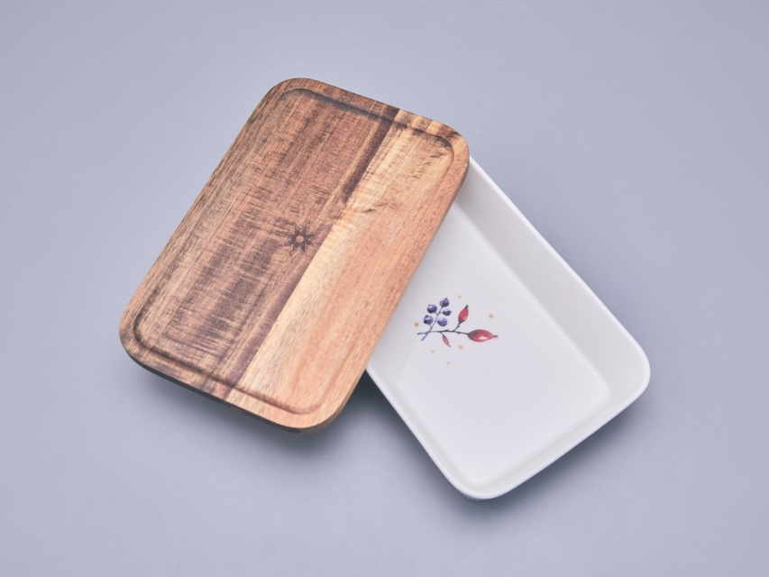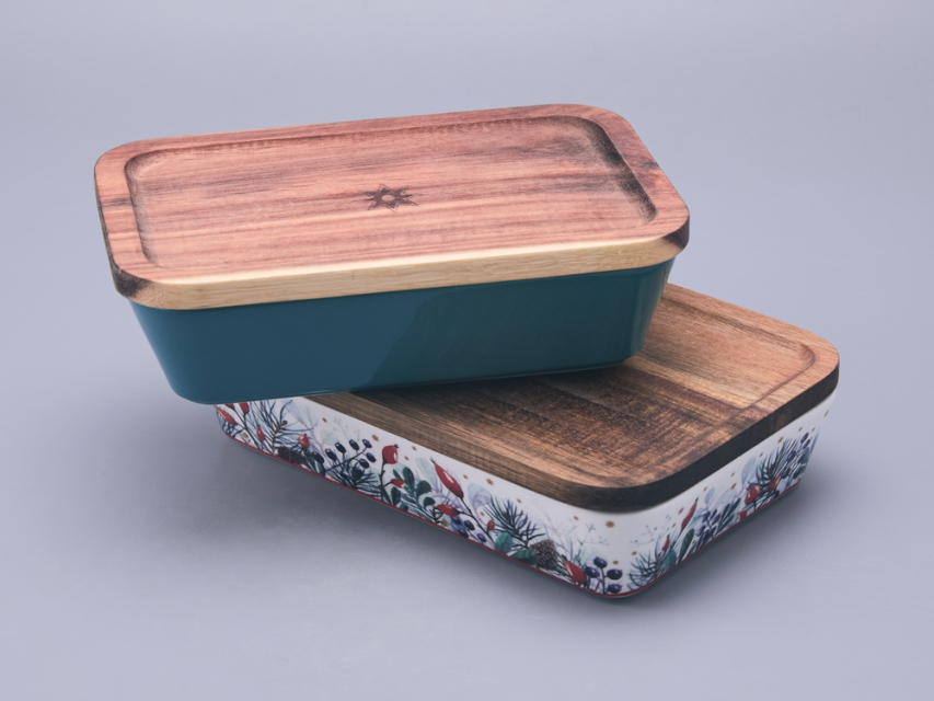 Набор для запекания с деревянной крышкой (2 предмета), в подарочной упаковке, форма Стандартная, рисунок Календа, арт 42.00073.00.1
