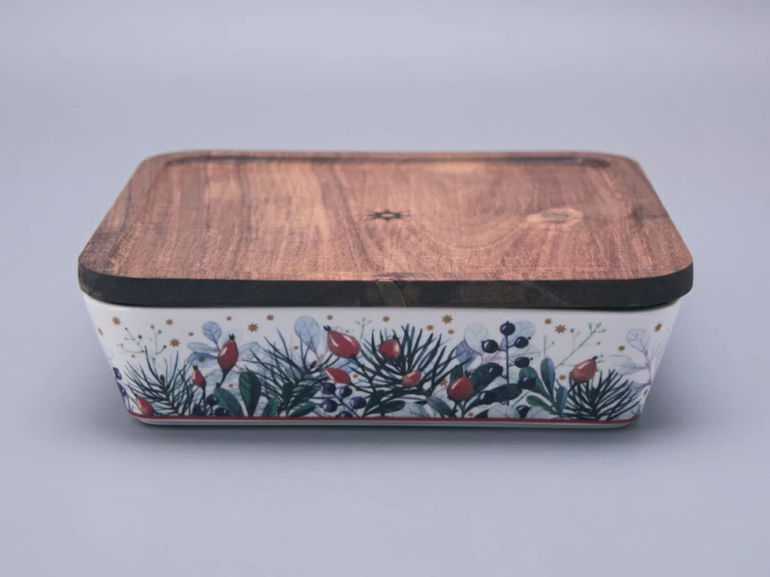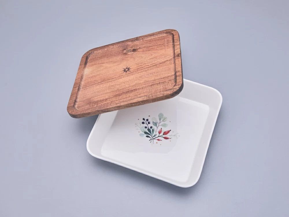 Набор для запекания с деревянной крышкой (2 предмета) в подарочной упаковке, форма Стандартная, рисунок Календа, арт 42.00075.00.1