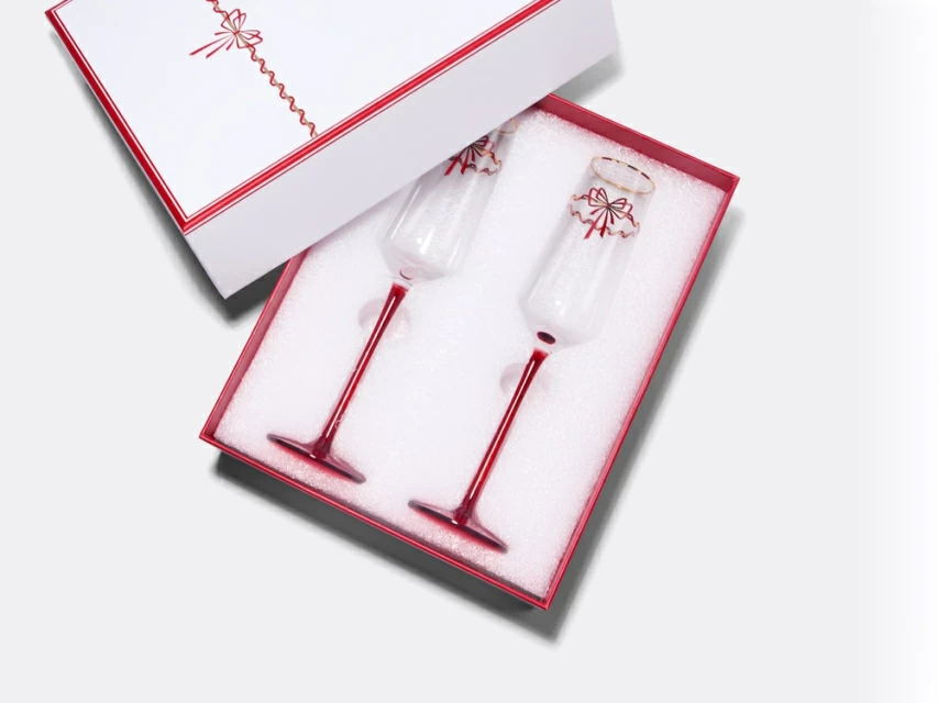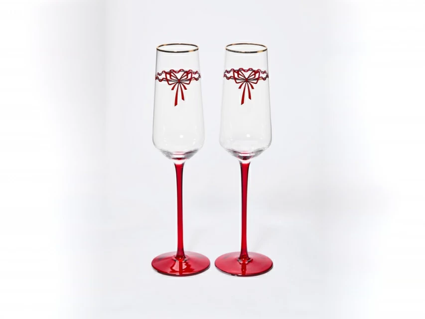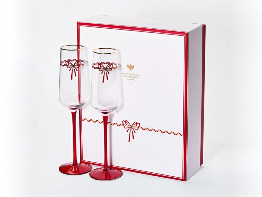 Бокалы декорированы изящными красными лентами и утонченными золотыми элементами, которые придают каждому изделию шарм и дополнительную праздничность. Бокалы «Календа» превосходно сочетаются с одноименной коллекцией фарфора, с различными коллекциями на форме «Идиллия», а также с классическими изделиями от Императорского фарфорового завода.