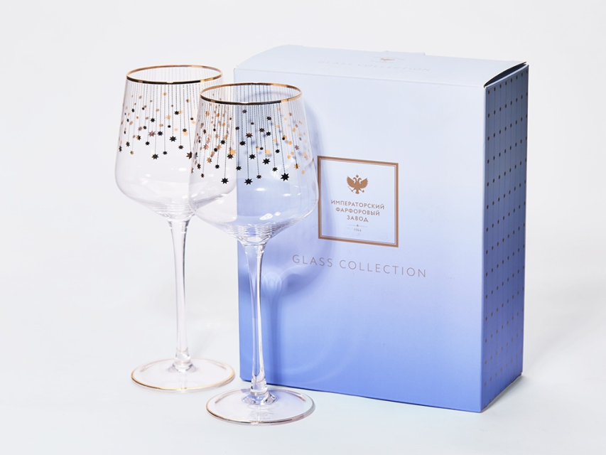 Набор из 2-х бокалов для вина 430 мл в подарочной упаковке, рисунок Азур золотой, арт 14.11447.07