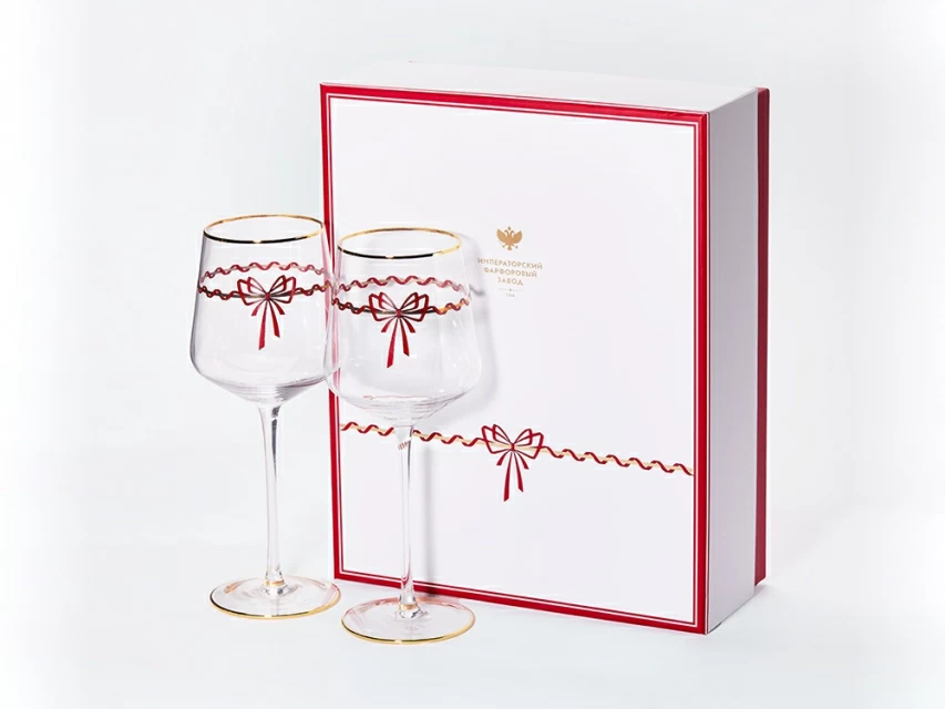 Бокалы декорированы изящными красными лентами и утонченными золотыми элементами, которые придают каждому изделию шарм и дополнительную праздничность. Бокалы «Календа» превосходно сочетаются с одноименной коллекцией фарфора, с различными коллекциями на форме «Идиллия», а также с классическими изделиями от Императорского фарфорового завода.