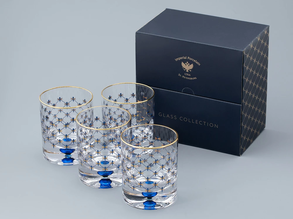 Набор из 4-х стаканов для виски 220 мл Кобальтовая сетка арт. 14.11003.07