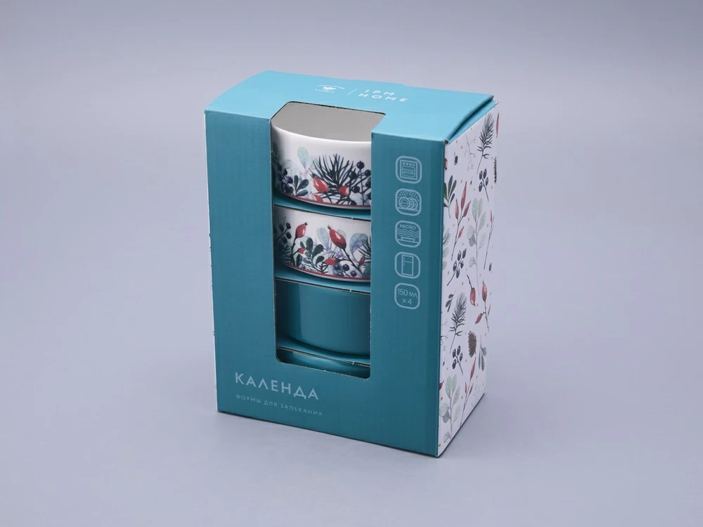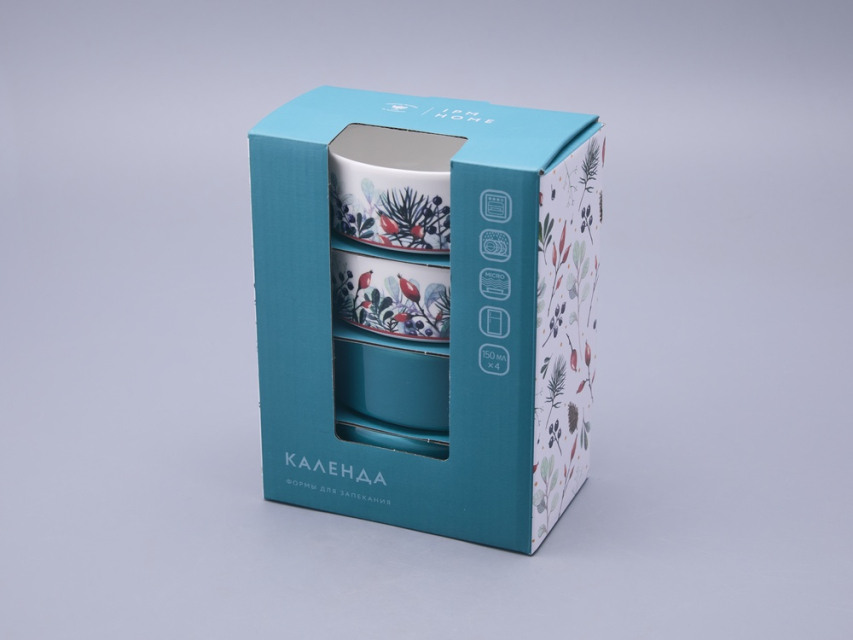 Набор кокотниц (4 предмета) в подарочной упаковке, форма Стандартная, рисунок Календа, арт 42.00076.00.1