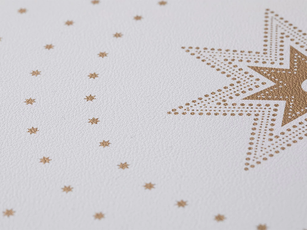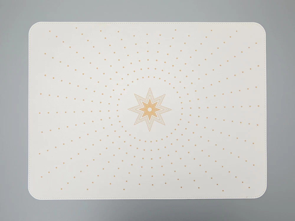 Плейсмат Звезда – идеальное сочетание функциональности и стиля. Плейсмат имеет две разные стороны для любого настроения: звездный золотой узор и однотонная бежевая сторона с логотипом IPM HOME. Элегантный звездный узор добавит волшебства новогодним вечерам, романтическим ужинам и семейным торжествам. Бежевый оттенок подчеркнет минимализм и простоту ежедневной сервировки. Подставка под тарелки выполнена из высококачественной экокожи, которая надежно защищает вашу мебель от царапин, пятен и высоких температур. Выбирая экокожу, вы делаете выбор в пользу экологически чистых материалов.
