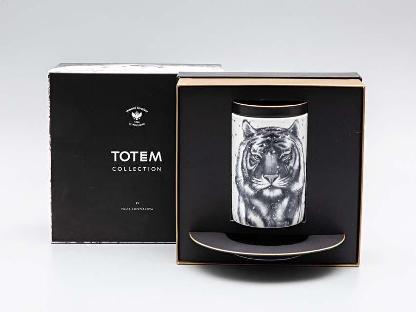 Бокал с блюдцем Тотем в подарочной упаковке, рисунок Тигр арт. 81.30082.00.1