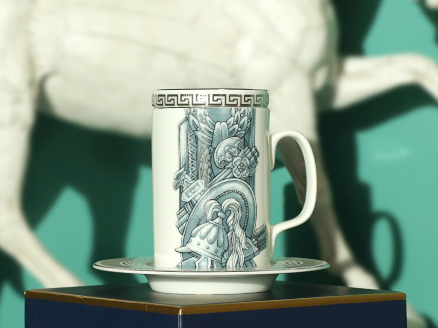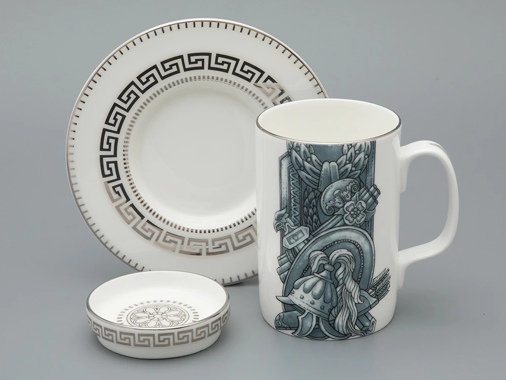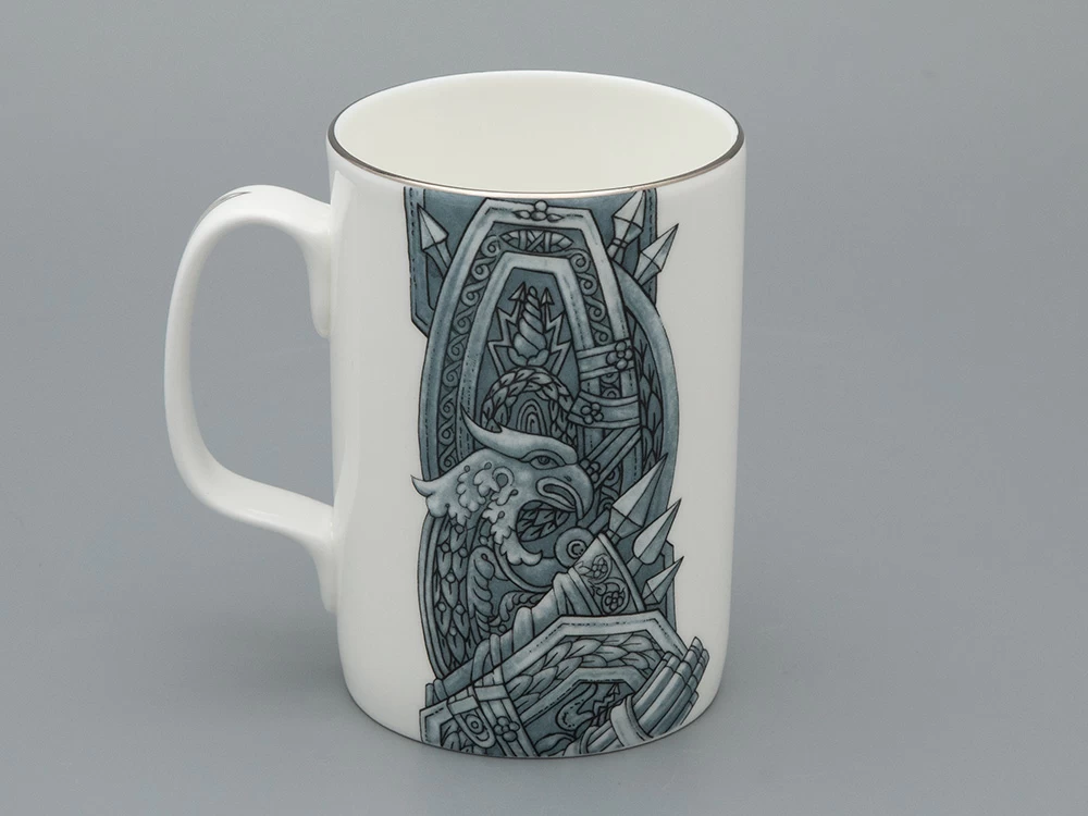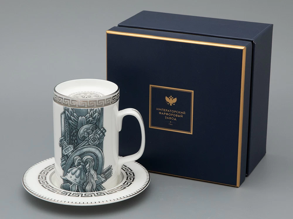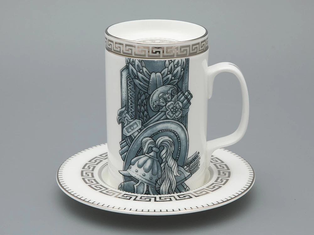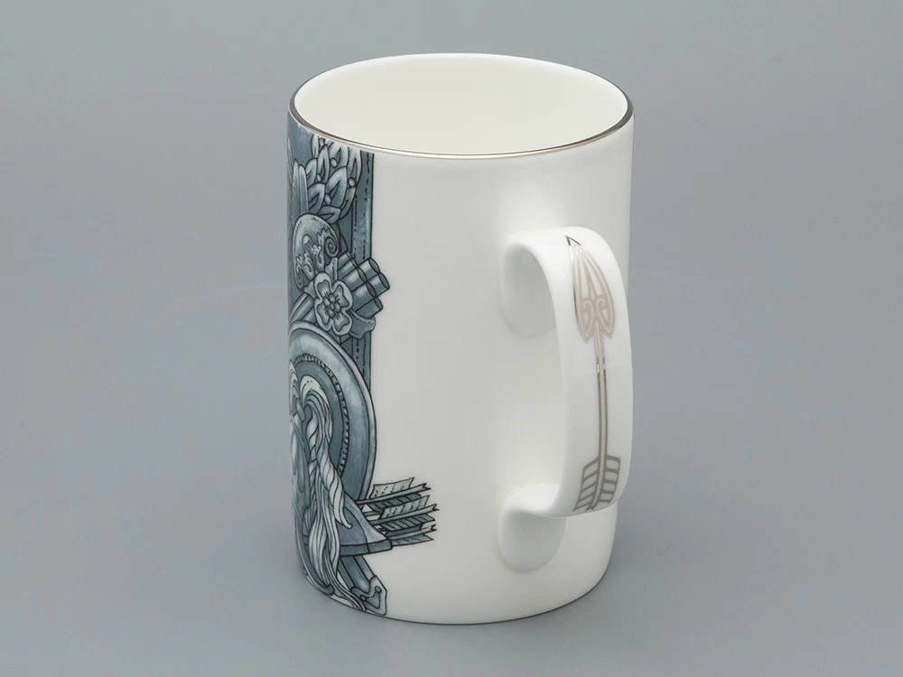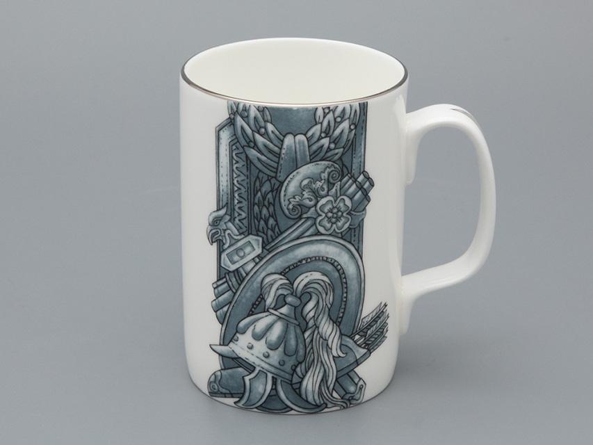 Бокал «Слава веков» воплощает в себе дух воинской доблести и величие древних цивилизаций. Декор, созданный художником Виолеттой Шаль, переносит зрителя в век железного оружия. На белоснежном фарфоре автор располагает военные атрибуты, трофеи, элементы оружия и триумфальные венки. Композиция дополнена элегантным орнаментом в виде греческого меандра. Основная композиция, выполненная в оттенках серого, безупречно сочетается с геометрическими элементами и с оттенком костяного фарфора. Бокал станет идеальным подарком для знатоков истории и искусства, прекрасным выбором для презента к любому празднику, а также элегантным украшением вашего интерьера.