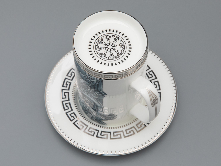 Подарочный набор Бокал с блюдцем и крышкой форма Топ рисунок Слава Веков платина, арт. 81.33063.00.1