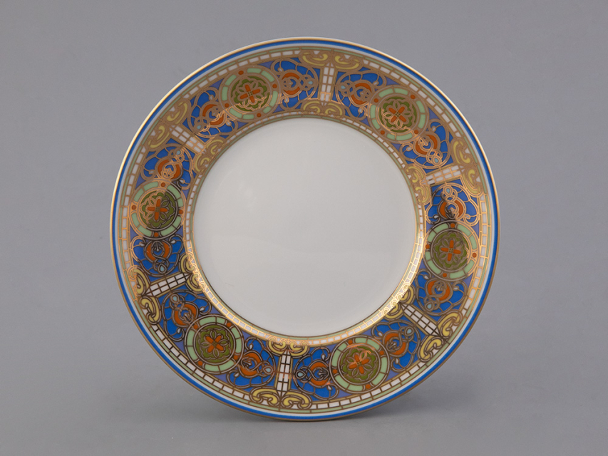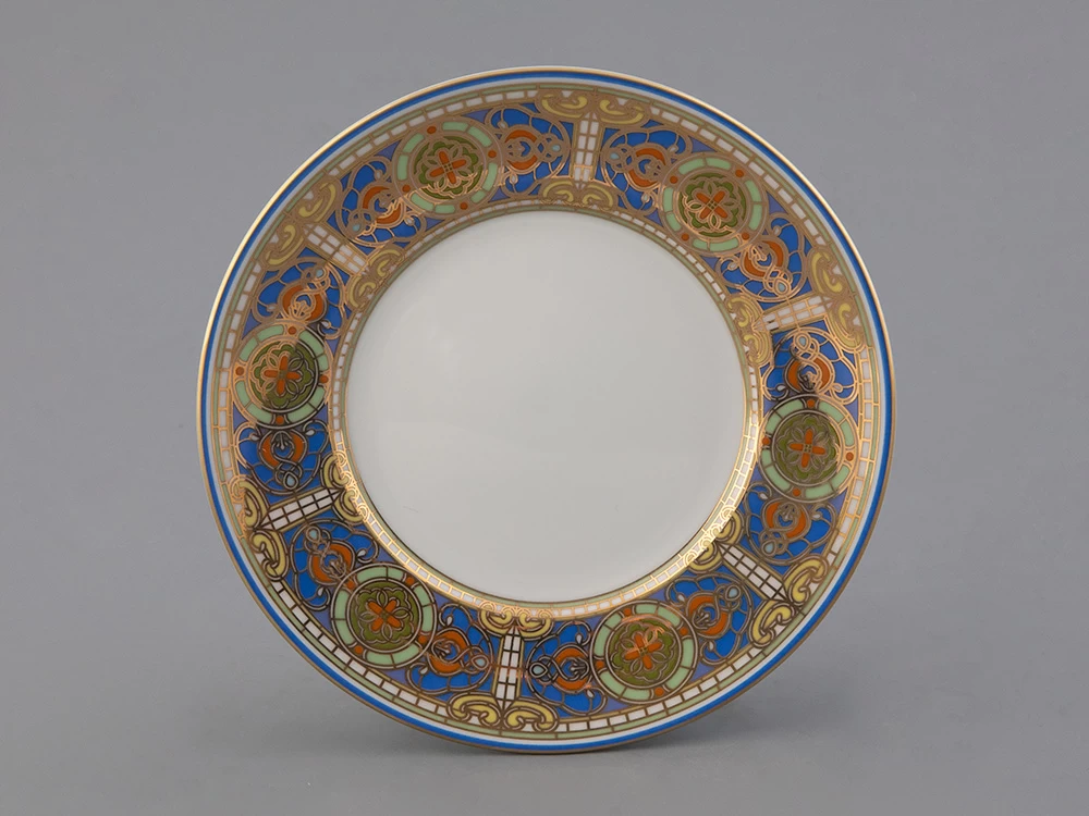 В нашей стране встречается несколько десятков сортов прекрасного ириса. Бутоны его бывают самых разных оттенков: от ослепительно-белых до чернильно-фиолетовых. Расцветка ириса, изображенного на тарелке, более привычна для наших широт. Пышные лепестки фиолетового цвета символизируют интеллект, благородство и уважение.