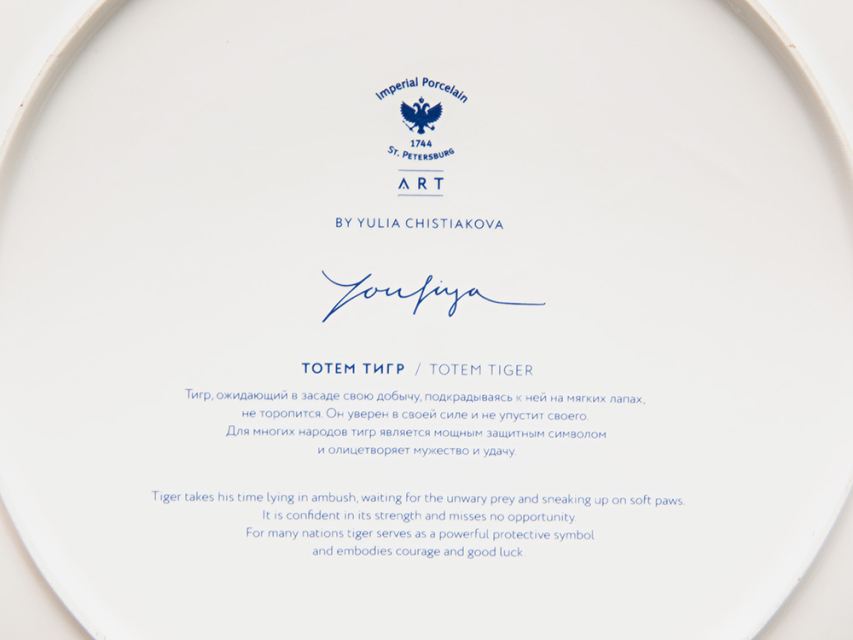 В 2021 году эксклюзивная коллекция «Тотем» пополнилась предметами с образом тигра. Для многих народов тигр является мощным защитным символом и олицетворяет мужество и удачу. Автор коллекции, ведущий художник ИФЗ Юлия Чистякова, неспроста выбрала именно тигра. Именно этот могучий зверь станет символом 2022 года.