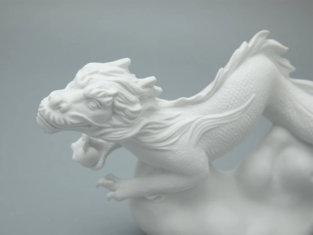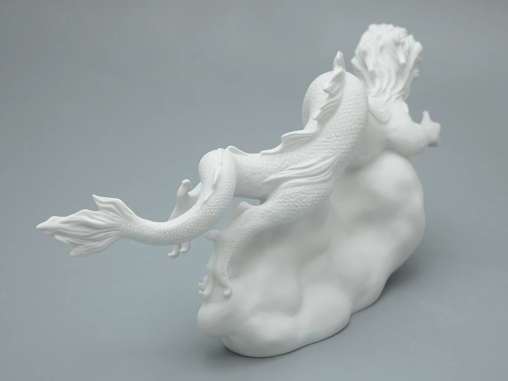 Автор запечатлела в фарфоре сказочного дракона – одного из символов восточного гороскопа. Скульптура исполнена в бисквите в реалистичной манере с тщательной проработкой деталей. Матовая бархатистая фактура материала придает образу особую декоративность.