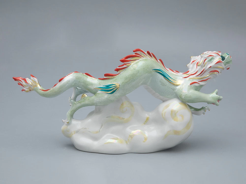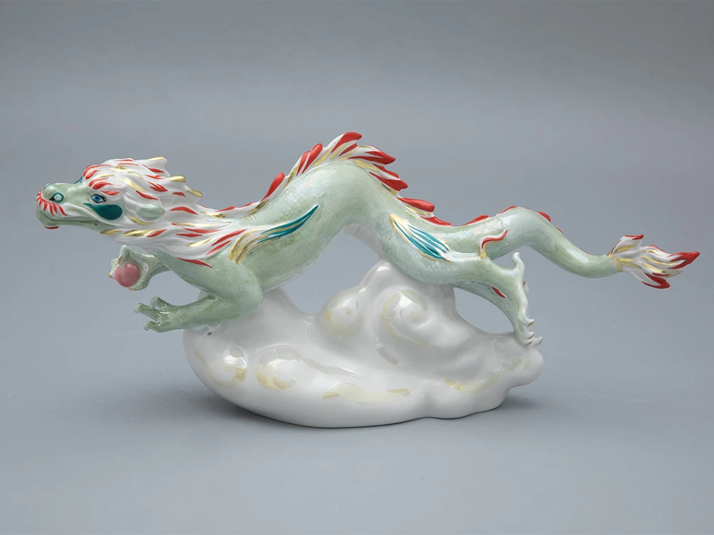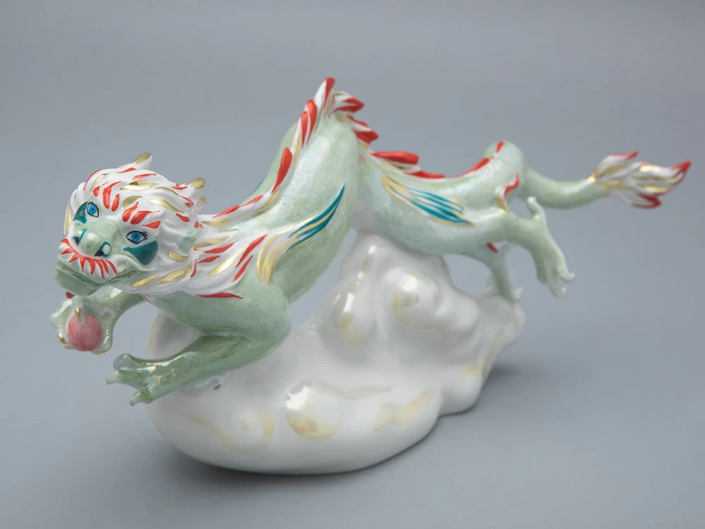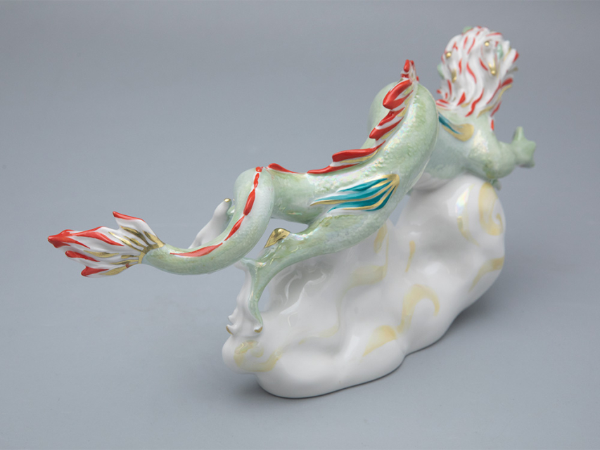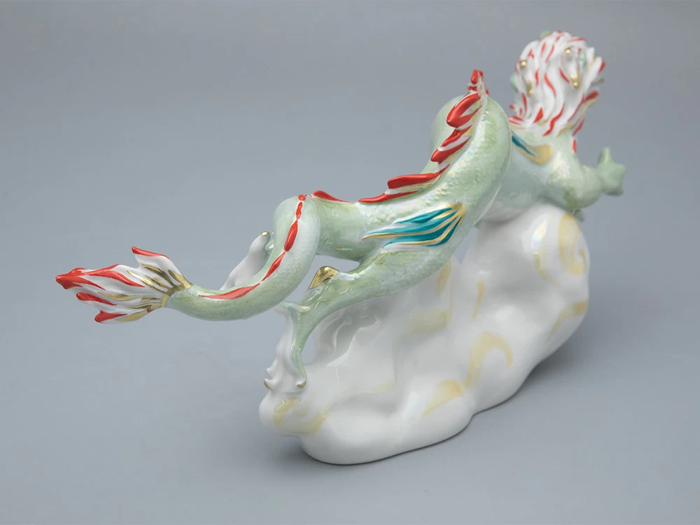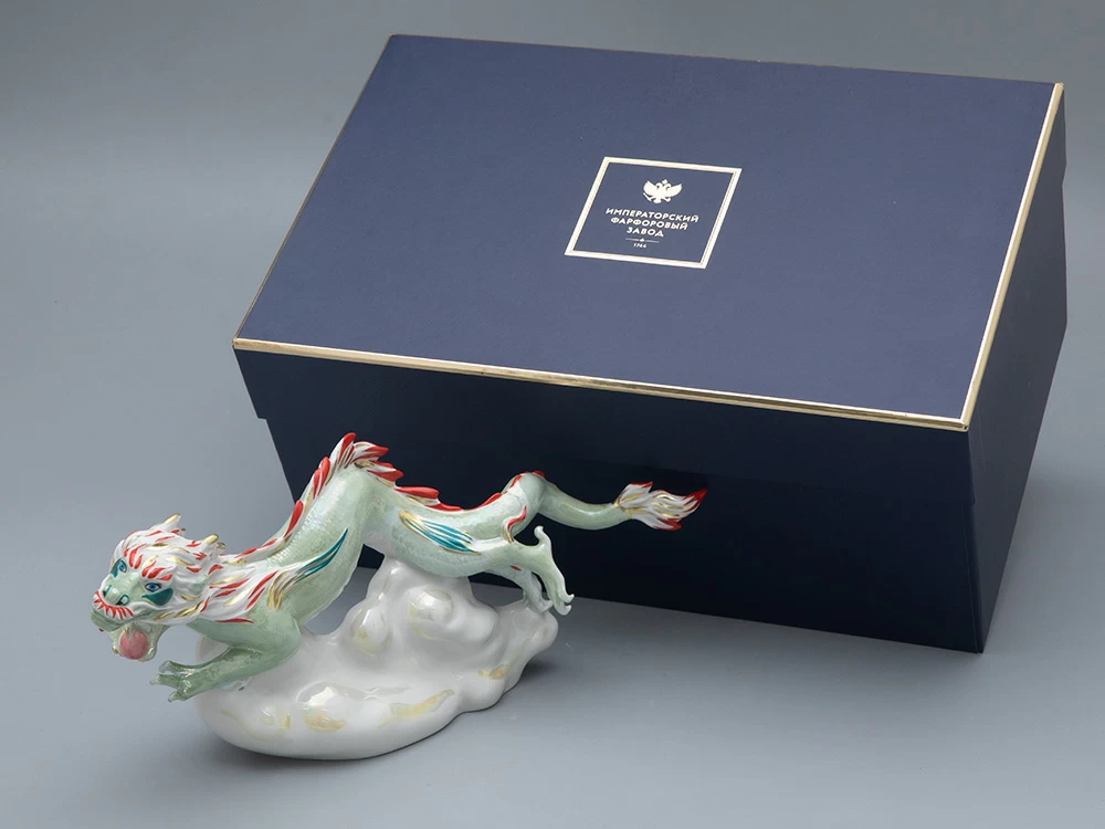 Императорский фарфоровый завод славится своей обширной коллекцией жанровой скульптуры. Ежегодно завод выпускает коллекцию фарфоровой пластики с изображениями зодиакального покровителя наступающего года. В 2024 году это – могущественный дракон. Скульптура «Дракон на облаке» (автор формы – Галина Белаш) выполнена с максимальным вниманием к каждой детали, будь то когтистые лапы дракона или его чешуя. Дополнительную выразительность скульптуре придает яркая фантазийная роспись. «Летящий дракон», как и другие работы Марии Матвеевой – экспрессивное, созданное словно на одном дыхании произведение, которое внесет свежий акцент в любой современный интерьер. Основная цветовая гамма – нежная и деликатная, с переливами люстра и золота. Благодаря такому сочетанию скульптура дракона кажется высеченной целиком из драгоценного минерала.