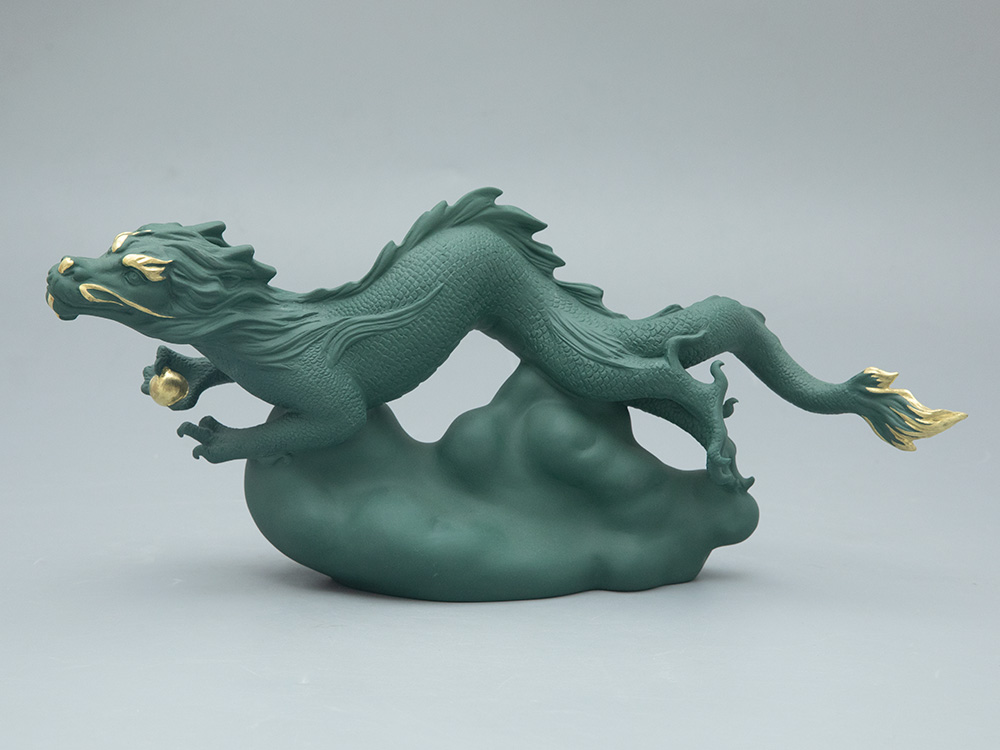 Автор запечатлела в фарфоре сказочного дракона – одного из символов восточного гороскопа. Скульптура исполнена в реалистичной манере с тщательной проработкой деталей в цветном бисквите – один из актуальных трендов фарфоровой индустрии. Матовая бархатистая фактура материала придает образу особую декоративность.