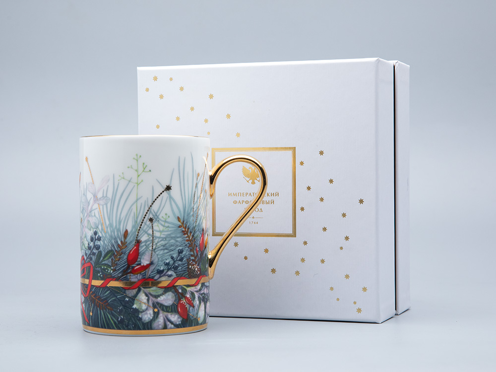 Бокал «Календа» - продолжение одноименной популярной серии фарфора, новинка 2022 года. «Календа» – это изысканное сочетание традиций и современных трендов. При создании композиции автор вдохновлялась традиционным праздничным декором – рождественским венком, а также обратилась к художественному наследию Императорского фарфорового завода, а именно, композициям одного из ведущих живописцев по фарфору XIX века Федора Красовского. Бокал можно использовать как самостоятельно, так и комбинировать с предметами из других коллекций. Роскошная хвоя венка созвучна коллекции «Азур», а алые ленты – «Скарлетт». Рисунок нанесен по особой технологии с использованием рельефной краски. Свое оригинальное название коллекция получила благодаря слову “calendae” – первый день месяца на латыни. В старославянском это слово пришло как «коляда», и чаще всего употреблялось как народное название рождественского Сочельника.