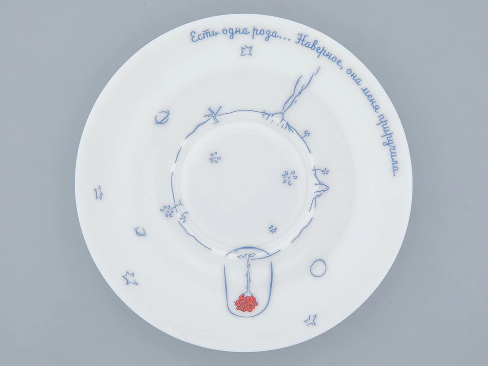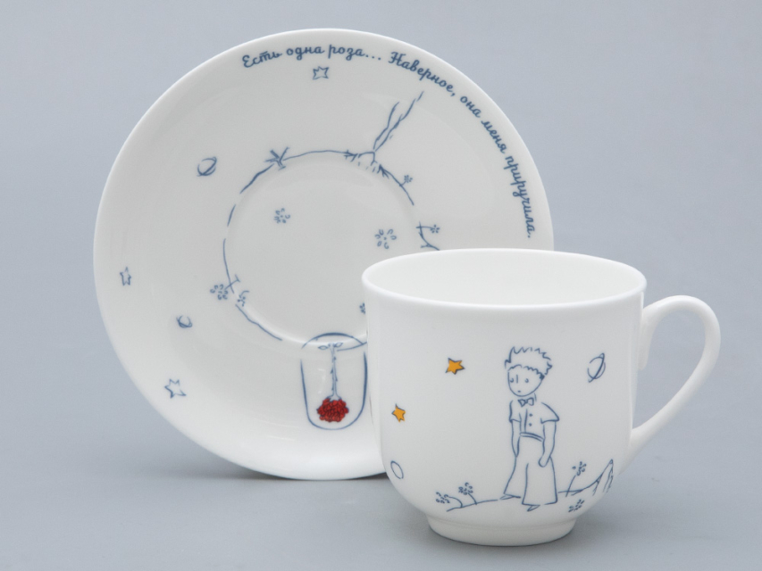 На фарфоровых чашках и бокалах оживают иллюстрации Антуана де Сент-Экзюпери, ставшие неотъемлемой частью произведения. Уникальные авторские рисунки, опубликованные в первом издании произведения 1943 г., стали своего рода lingua franca – объединяющим языком для представителей всех стран.