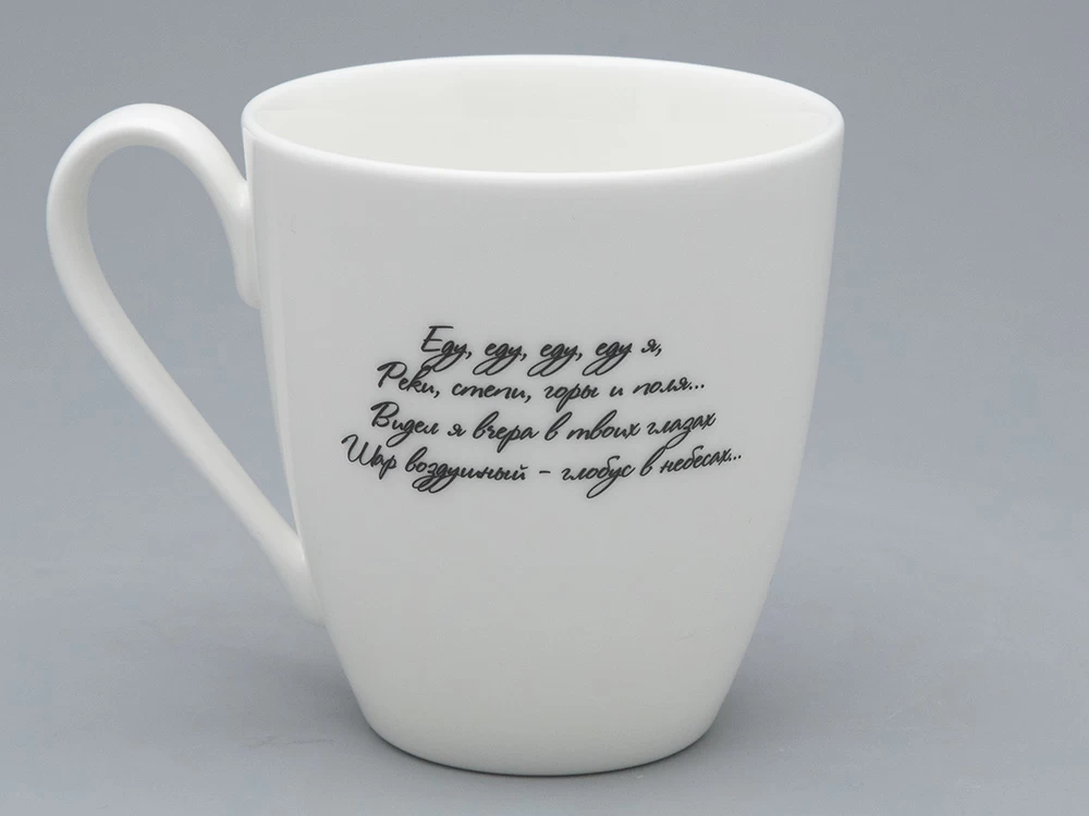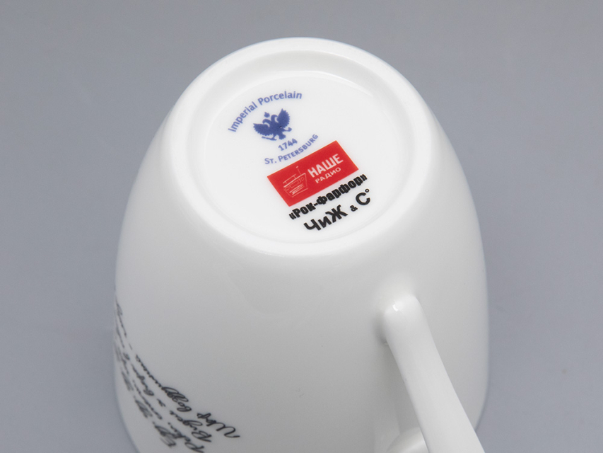 Созданная в начале 1990-х группа «Чиж & Co» до сих пор остается одной из любимых у поклонников русского рока, а песни перепеваются. Дизайн бокала, как и другие работы коллекции, состоит из двух частей: авторского рисунка с логотипом группы и словами одной из самых известных песен «Еду, еду…». Бокал входит в эксклюзивную линейку фарфора, созданного специально к 25-летию радиостанции «Наше радио».