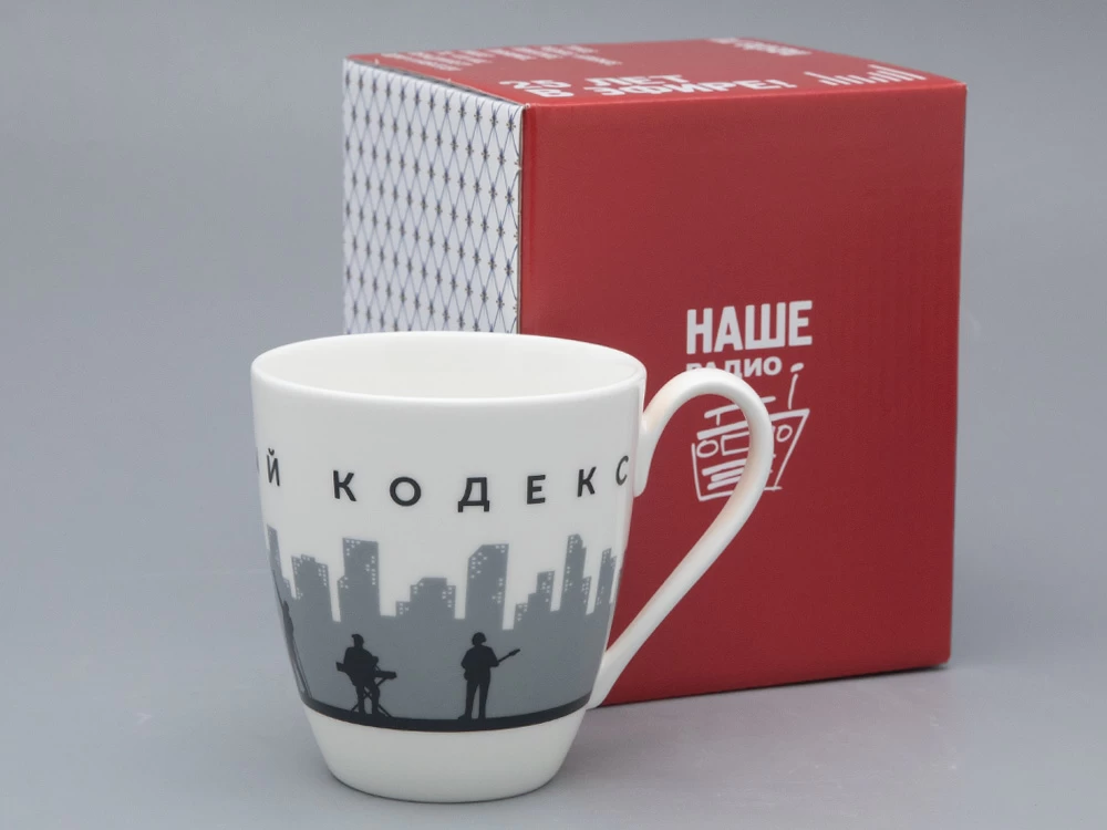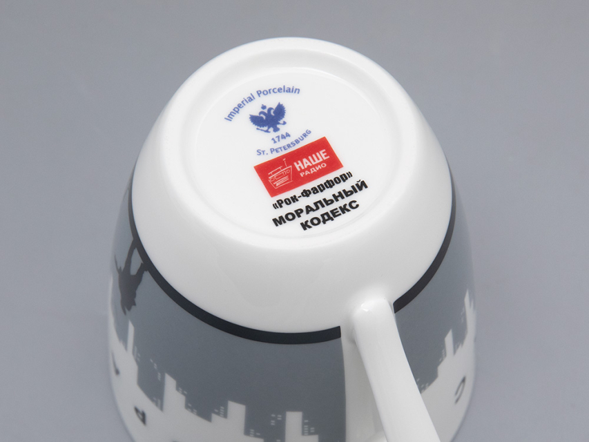 «Моральный кодекс» живет на российской рок-сцене уже более трех десятилетий. Музыкальный стиль группы держится на трёх основных течениях: ироничный биг-бит, нео-романтика и танцевальный рок-н-ролл. «Визитная карточка» группы – это пародийные, зачастую, абстрактные тексты и индивидуальная, ни на кого не похожая манера вокалиста. Им уже много лет является Сергей Мазаев. Для «своего» фарфорового бокала «Моральный кодекс» выбрал стилизованное изображение членов группы на фоне ночного города. Бокал входит в эксклюзивную линейку фарфора, созданного специально к 25-летию радиостанции «Наше радио».