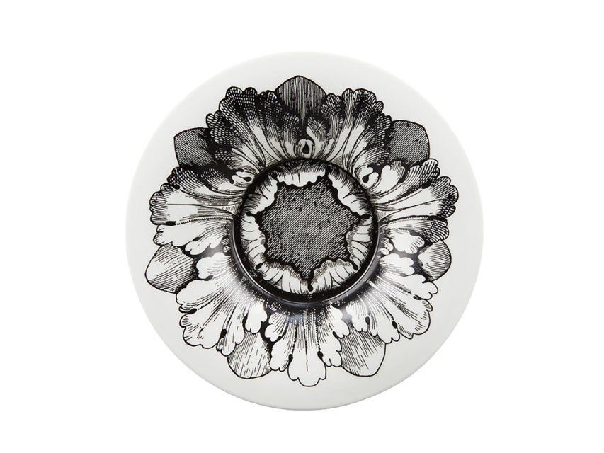 Светотень каждого изображения акцентирует рельефный декор деталей садового убранства. Гирлянды и розетки, листья тропического растения – аканта, декорирующие капители ордеров, выполнены в технике гравюры – они будто переместились с холодной архитектуры на тончайший костяной фарфор.