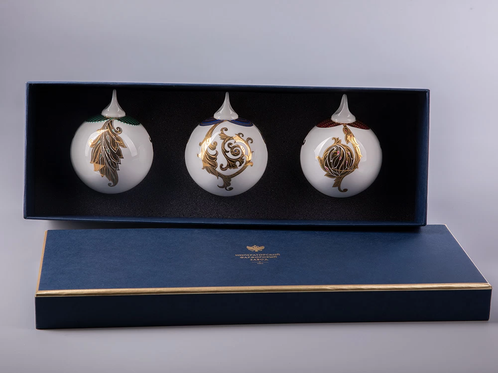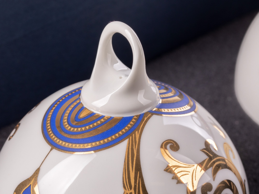 «Рождественские узоры» – пример виртуозной работы мастеров Императорского фарфорового завода. Изготовление каждого шара требует максимальной бережности, внимательности и аккуратности.