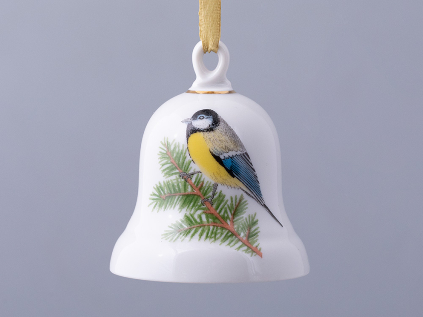 Изящный колокольчик «Синица» – маленький фарфоровый шедевр. Декор колокольчика изображает крохотную певчую птичку – символ весны и пробуждения природы. Такая изысканная работа служит оригинальным украшением интерьера, а также является предметом коллекционирования.